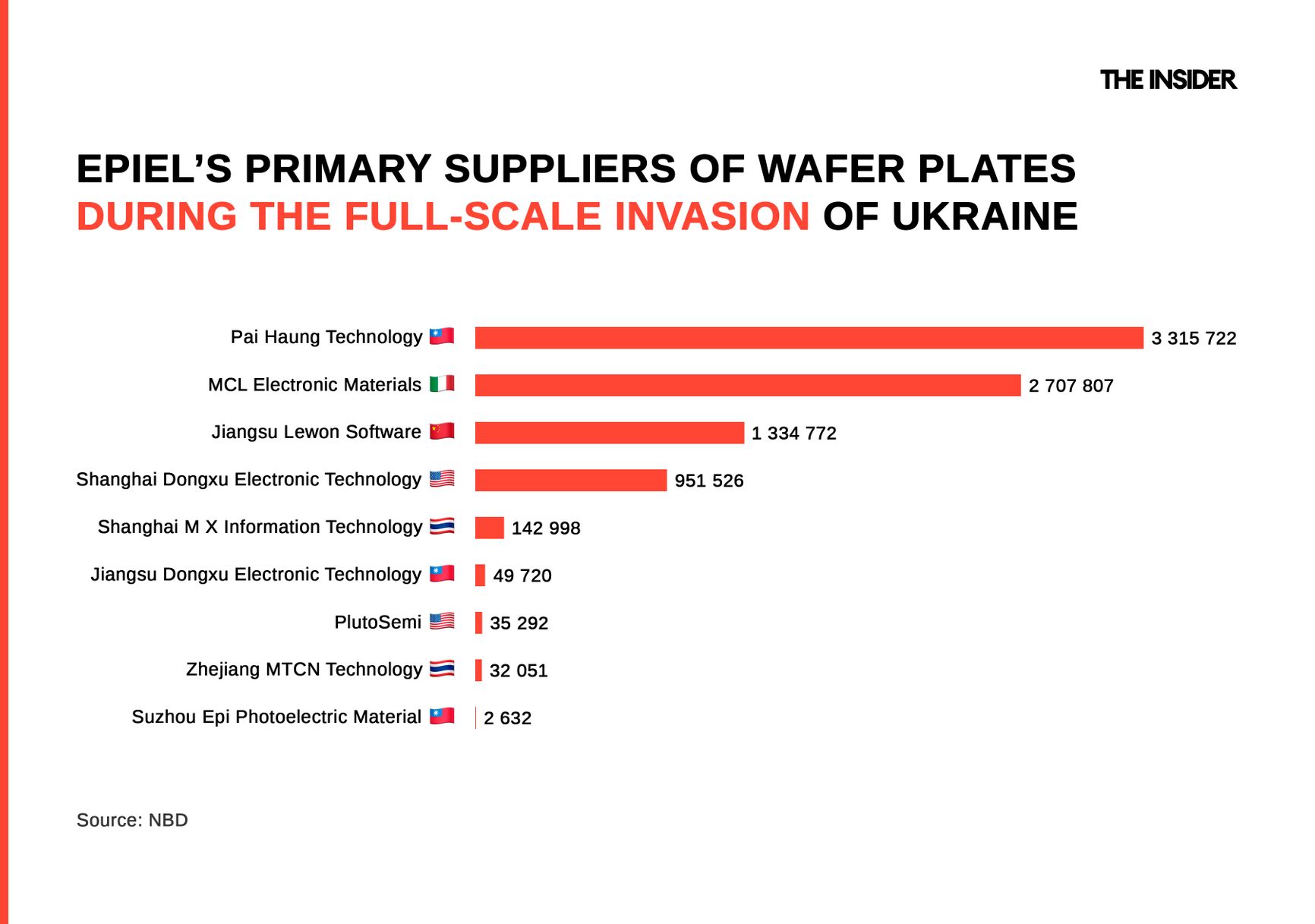Epiel's fourth largest supplier is the Chinese arm of Japanese corporation D&X Co. Ltd. In response to The Insider's request, the Japanese Ministry of Economy, Industry, and Trade sent a list of banned goods, which shows that the export of silicon wafers (code 381800) to Russia by Japanese companies is not allowed. D&X Co has not responded to The Insider's inquiry. The ministry also stated it had been unaware of D&X Co's shipments to Russia.