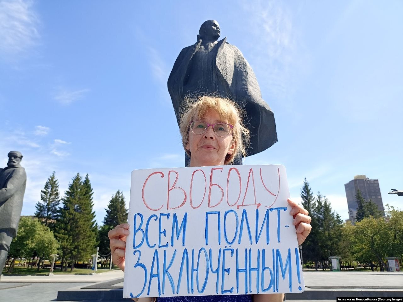 Жительница Новосибирска Елена Тардасова-Юн провела традиционный субботний пикет с призывом освободить политических заключённых. Об этом Сибирь.Реалии рассказала знакомая активистки.