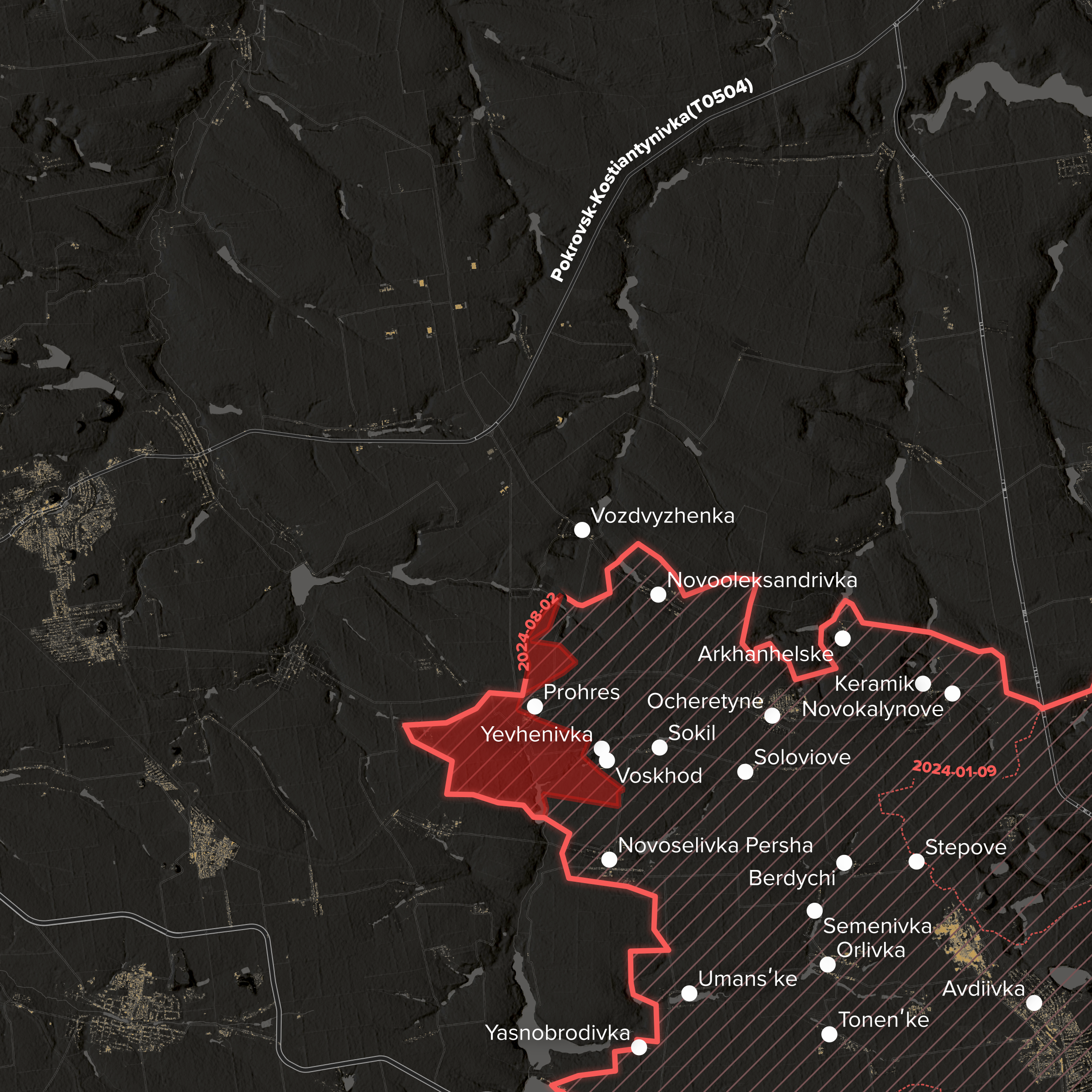After capturing the village of Prohres, Russian forces advanced further along the Ocheretyne-Pokrovsk railway, as well as to the north and south of it. Drone footage from both sides shows that Russian troops, having repelled small tank counterattacks, have reached the villages of Vesele, Zhelanne, and Tymofiivka. The village of Vovche, south of Prohres, has also been captured.