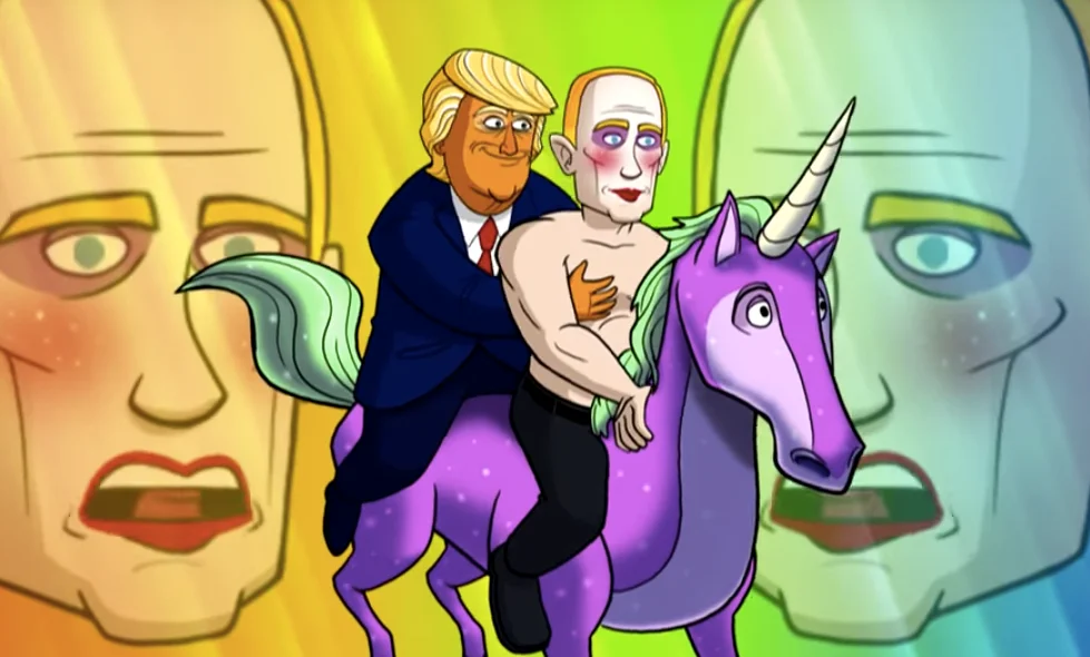 “My sweet orange bear, how much I missed you,” Putin said, stroking Trump’s cheek.