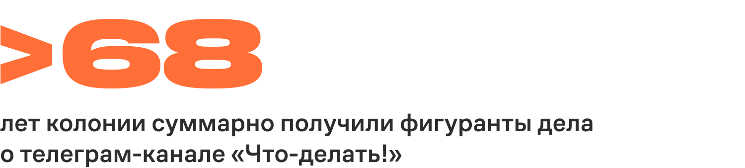 В апреле суд в Москве вынес приговор по делу о телеграм-канале «Что-делать!», в котором, по версии силовиков, планировалась координация массовых беспорядков в 2021 году. Все одиннадцать фигурантов дела получили реальные сроки: от пяти лет и двух месяцев до восьми лет колонии. Одна из фигуранток получила отсрочку в отбытии наказания, поскольку у нее есть несовершеннолетний ребенок.