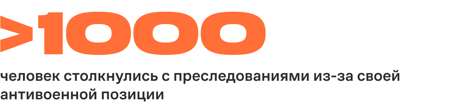 Мы ведем регулярно обновляемую инфографику о людях, столкнувшихся с преследованиями из-за своей антивоенной позиции, а в рубрике »Узники военного времени» собрана информация о преследуемых по обвинениям в поджогах, диверсиях, военной помощи Украине и отказе принимать участие в военных действиях.