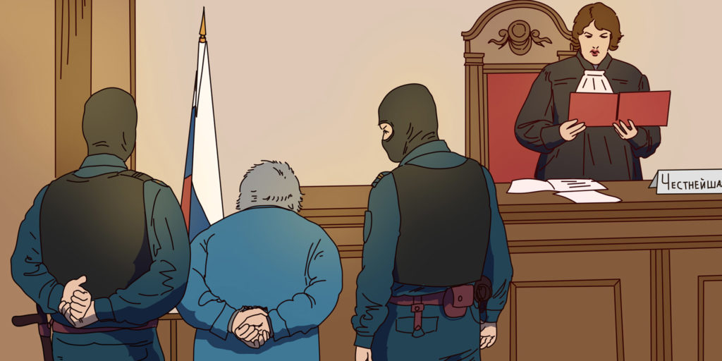 К новости прилагалось беззвучное видео, на котором видно светловолосую женщину в судебном «аквариуме». Она внимательно слушает, и в какой-то момент кажется, что она пытается сдержать слезы. В отражении ее стеклянной камеры виден мужчина в мантии судьи, человек в прокурорской форме и молодая девушка рядом с ним. Адвокат в кадр не попадает.