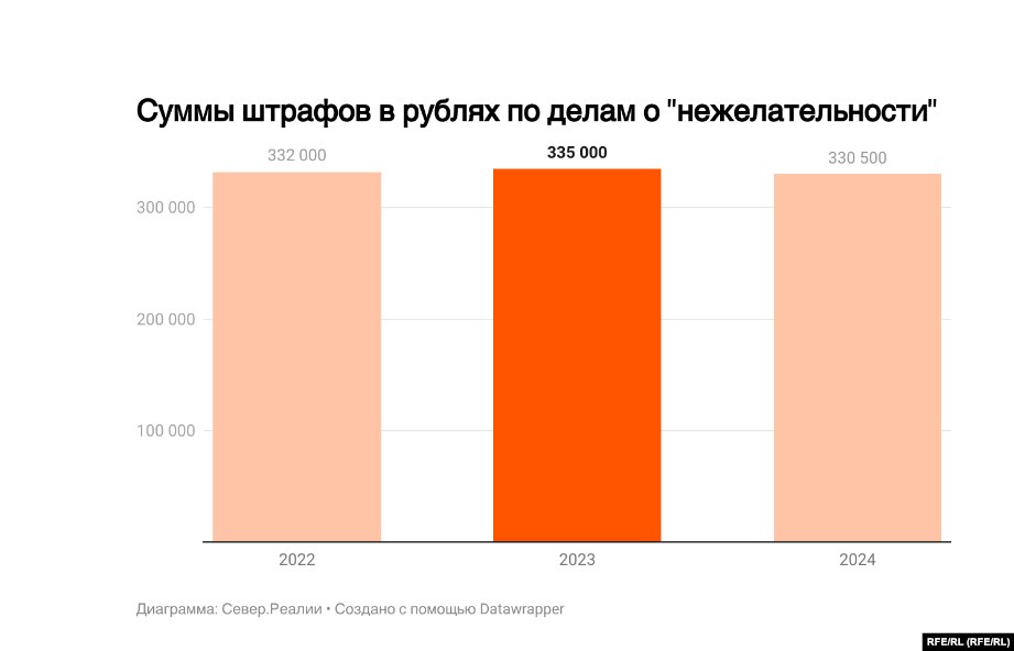 Несмотря на то что большинство штрафов составляют 5 тысяч рублей, российское государство за счет дел о "нежелательности" могло пополнить бюджет как минимум на 997,5 тысячи рублей (Север.Реалии неизвестно, сколько штрафов было выплачено в реальности). Если учитывать, что в 20 делах не была указана сумма штрафа, и предположить, что каждый из них составлял не менее 5 тысяч рублей, то общая сумма может достигать 1 миллиона 100 тысяч рублей. Это минимальная оценка, так как еще по 45 протоколам наказание неизвестно.