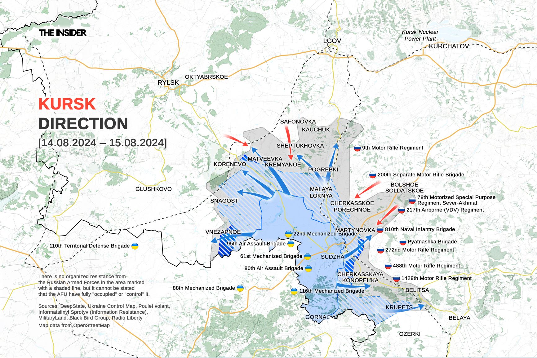 Regarding Putin's mention of threats to nuclear facilities, reports from Russian pro-war sources (1, 2, 3) indicate that Moscow is concerned about a potential for Ukraine to seize the Kursk Nuclear Power Plant in Kurchatov and use it as an instrument of “nuclear blackmail.” Although there have been reports of Ukrainian reconnaissance groups coming within 18.5 kilometers (11.5 miles) of Kurchatov, the notion that the AFU could capture a nuclear power plant as a bargaining chip seems implausible. Moreover, the plant is too far from the border for Ukrainian forces to maintain effective control and secure the flanks of a potential Russian breakthrough toward Kurchatov.