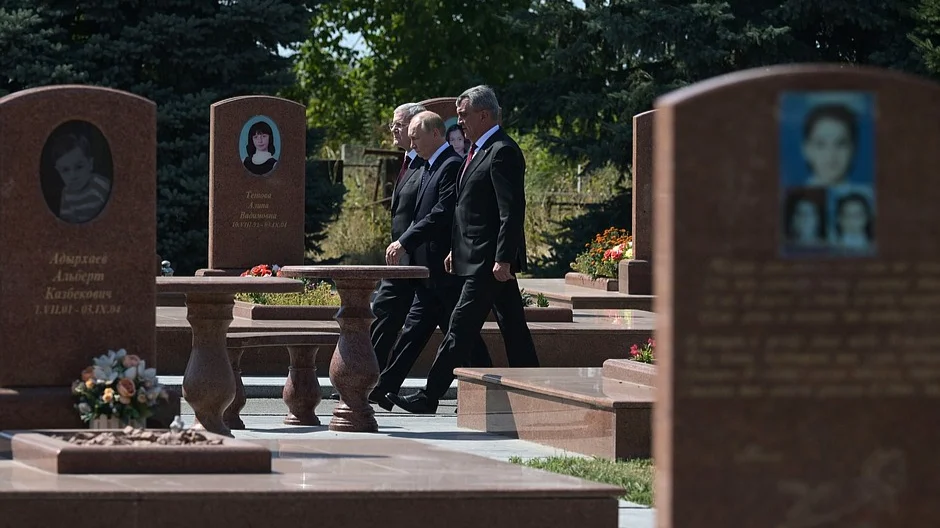 В последующие годы Путин несколько посещал Северную Осетию. Но в Беслан он приехал лишь однажды — в 2008 году, тогда он побывал на кладбище в Беслане, где похоронены жертвы теракта в школе №1. В саму школу он не заходил все двадцать лет.