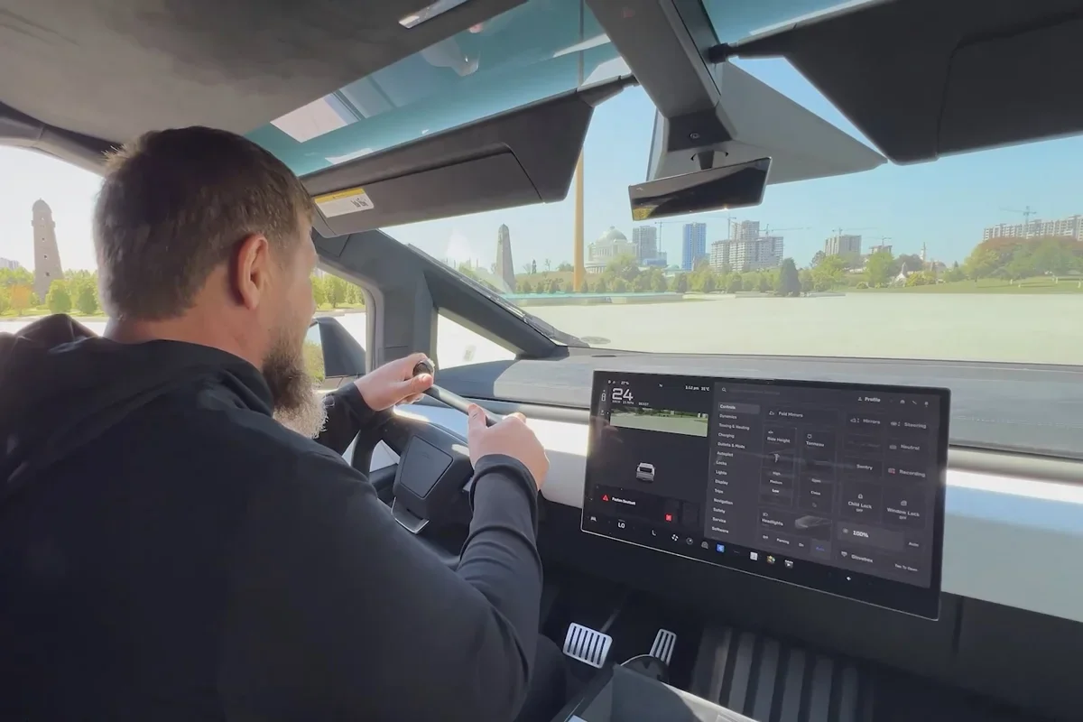 Ramzan Kadyrov on the Tesla Cybertruck in Grozny, Chechnya. Photo: Telegram