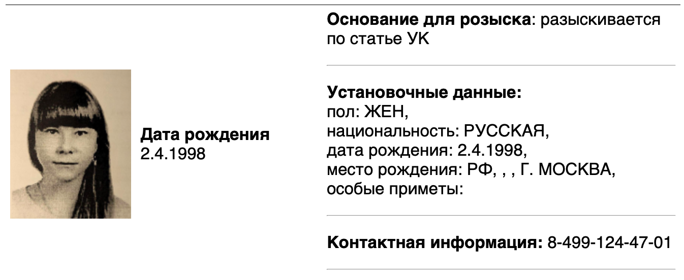 Басманный районный суд Москвы заочно арестовал 26-летнюю москвичку Александру Фролову, попавшую в список «террористов и экстремистов» Росфинмониторинга. Об этом стало известно «Медиазоне».