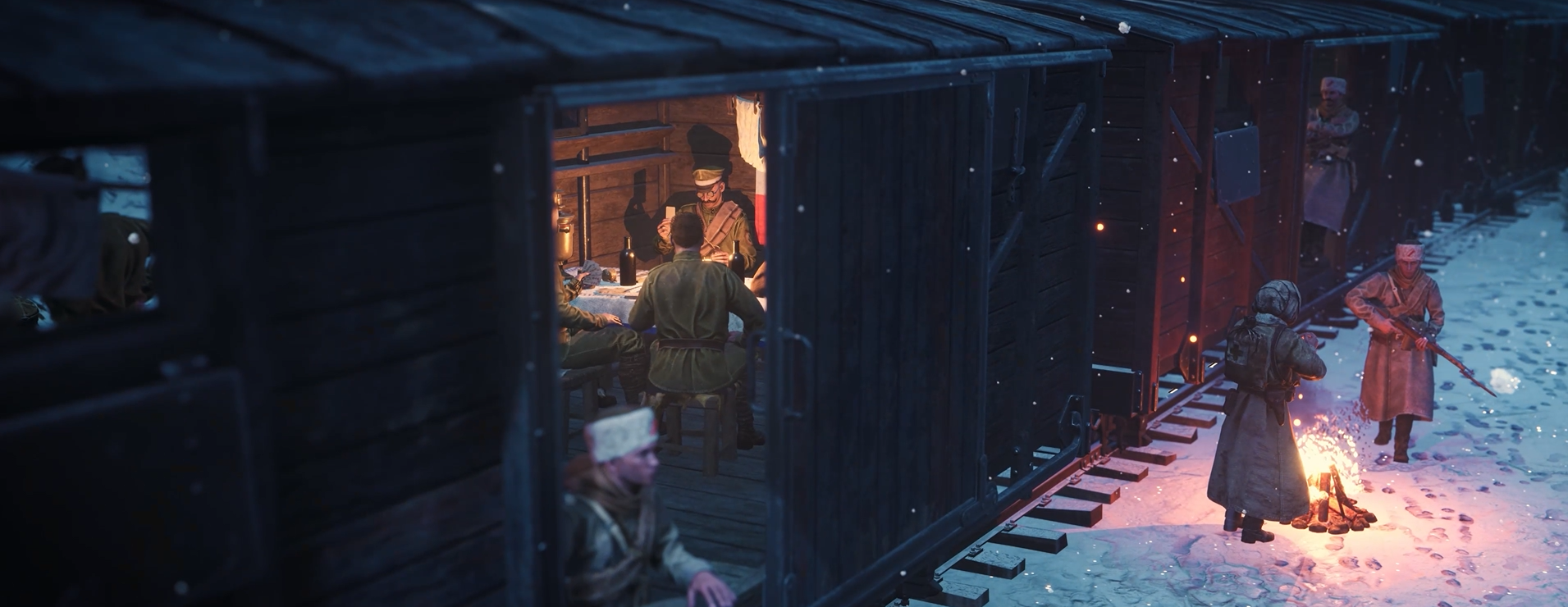 По ходу игры вы всё дальше отходите от проблем противостояния белых и красных и фокусируетесь на самом поезде: вам нужно проехать через морозную Сибирь, следить за личным составом и самим поездом, решать различные трудные задачи, взаимодействовать с жителями разных городов. Мы показываем, что война – это не только физическое противостояние, где есть условные враги, но также страдания и трудности мирных жителей и комбатантов.