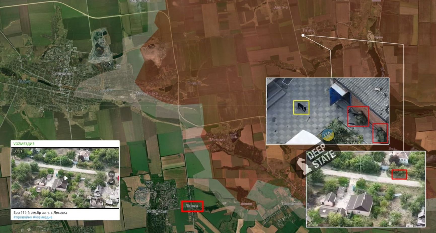 DeepState указывает на распространение пророссийскими источниками снятых в Птичьем штурмовых действий за захват Лесовки к востоку от Украинска. По информации аналитиков проекта, группы ВС РФ, действительно заходившие в Лесовку, уничтожены или отступили.