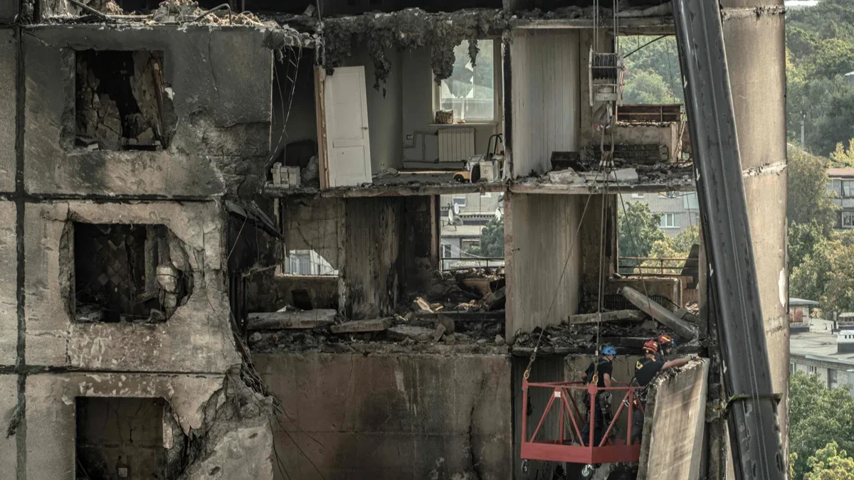 A view of a residential building after firefighters extinguished a fire after a Russian bomb hit Kharkiv, 30 August 2024. Photo: Ivan Samoilov / AFP / Scanpix / LETA