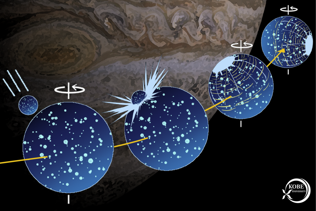 По словам Хираты, взяться за исследование его заставило желание разобраться в происхождении гигантских борозд, занимающих большую часть поверхности Ганимеда. Борозды образуют концентрические круги вокруг одного конкретного места. Это еще в 1980-х годах привело ученых к мысли, что отметины являются результатом мощного удара, говорится на сайте Университета Кобе. «Но ученые не были уверены, насколько сильным было это воздействие и какое влияние оно оказало на луну Юпитера», — объяснил Хирата.