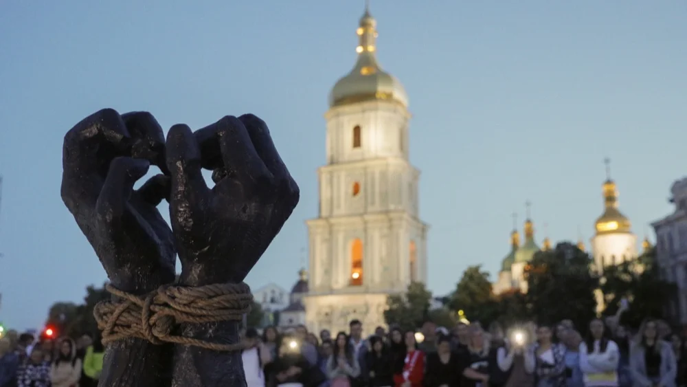 A monument in Kyiv to the resilience of the Ukrainian prisoners of war captured in the Azovstal Iron and Steel works in Mariupol, May 2023. Photo: EPA-EFE/SERGEY DOLZHENKO