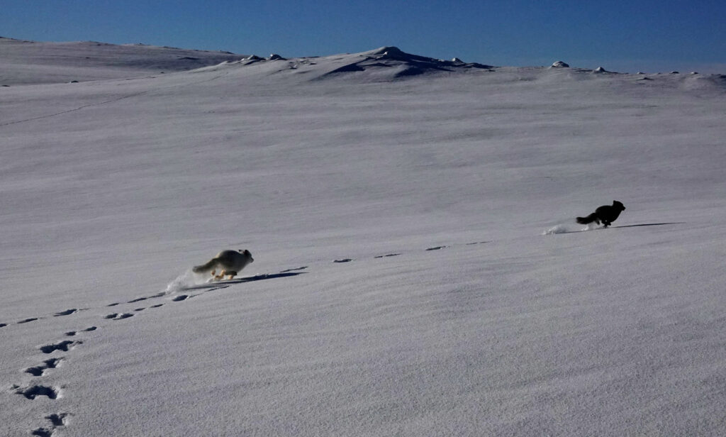 2023 год был особенно тяжелым: обычно биолог Крейг Джексон и руководитель проекта Кристин Ульвунд ставят себе целью выпустить на волю около 20 песцов, но прошлой весной только четыре пары из восьми, содержащихся в неволе, смогли дать потомство, и выжило только потомство двух из них. Только девять детенышей росли в вольере на открытом воздухе в Оппдале — это примерно 400 километров на север от Осло. Двоих оставили для дальнейшего разведения, еще двоих поймали беркуты всего за несколько недель до того, как их должны были выпустить. На волю в итоге удалось выпустить только пятерых.