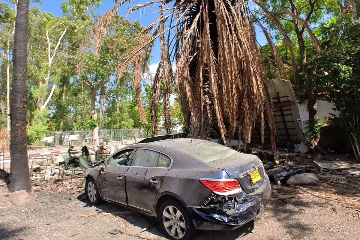 Рядом с ним всё еще горит трава, запах гари чувствуется на несколько километров. В Кирьят-Шмоне пожары возникают почти после каждого обстрела, так как город окружен живописным лесом или тем, что еще совсем недавно было лесом, а теперь просто выжженная земля.
