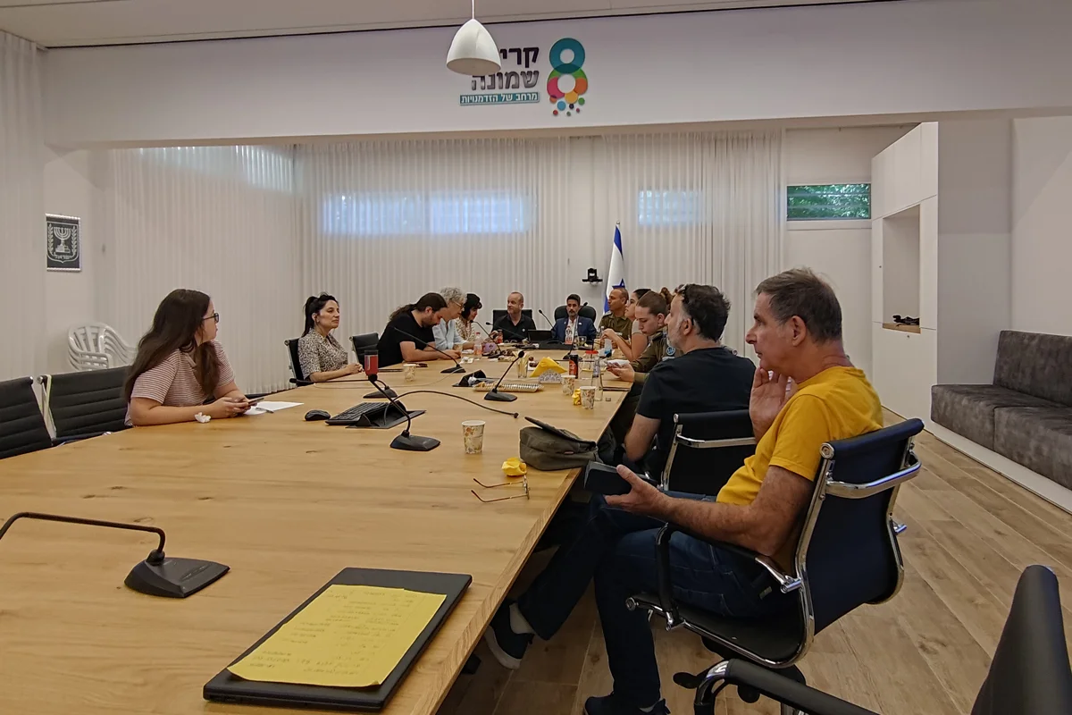 Мэр города Кирьят-Шмона Авихай Штерн приглашает нас к столу, с тем чтобы начать-таки встречу, хоть и с большим опозданием. Перед этим он успевает дать экстренное телефонное мини-интервью одной из влиятельных радиостанций.