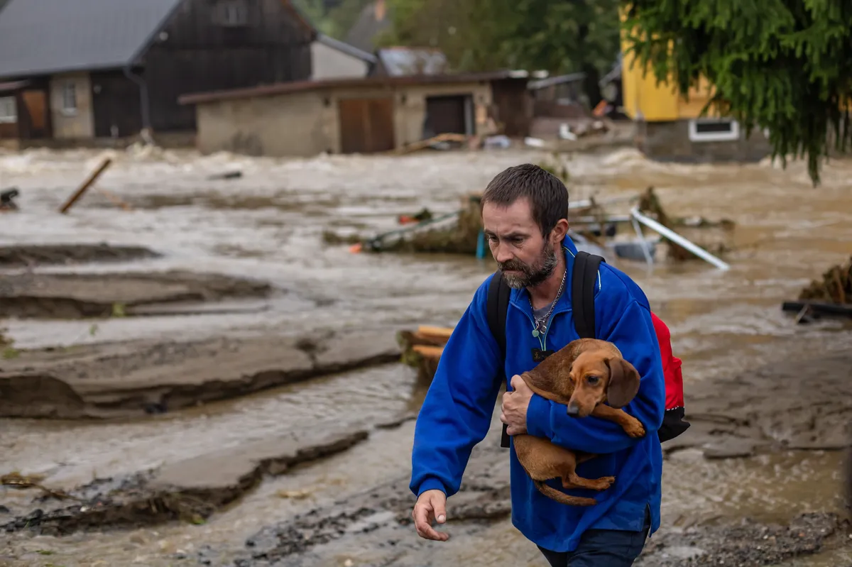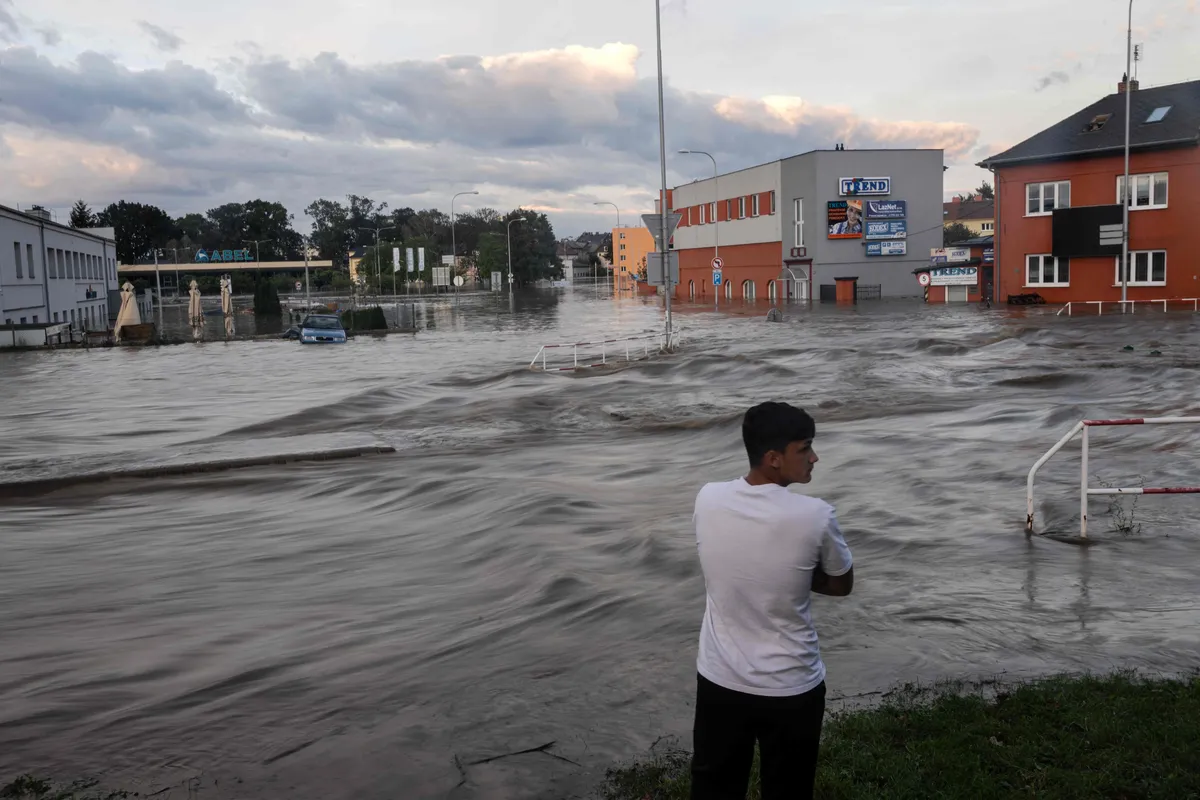 Вид на затопленную после сильного дождя улицу в деревне Кросновице на юго-западе Польши, 14 сентября 2024 года. Фото: Maciej Kulczynski / EPA-EFEЗатопленные улицы после сильных ливней, приведших к наводнению в Клодзко, юго-западная Польша, 15 сентября 2024 года. Фото: Maciej Kulczynski / EPA-EFEРазрушения на затопленных улицах после сильных дождей в Глухолазах, юго-западная Польша, 15 сентября 2024 года. Фото: Michal Meissner / EPA-EFEЛюди пробираются через затопленный подземный переход в Кишиневе, Молдова, 15 сентября 2024 года. Фото: Dumitru Doru / EPA-EFEМестные жители убираются в храме после наводнения в деревне Печеа, Румыния, 15 сентября 2024 года. Фото: Daniel Mihailescu / AFP / Scanpix / LETAРазлив реки Старич после сильного дождя, обрушившегося на деревню Липова-Лазне, Чехия, 15 сентября 2024 года. Фото: Martin Divisek / EPA-EFEЗатопленные улицы в Опаве, Чехия, 15 сентября 2024 года. Фото: Michal Cizek / AFP / Scanpix / LETAПолицейский вертолет летает над затопленными домами у разлившейся реки Бела в городе Есеник, Чехия, 15 сентября 2024 года. Фото: Martin Divisek / EPA-EFEМужчина со своей собакой после эвакуации из затопленного дома в городе Есеник, Чехия, 15 сентября 2024 года. Фото: Martin Divisek / EPA-EFEВид на разрушения, вызванные наводнением в Есенике, Чехия, 16 сентября 2024 года. Фото: Petr David Josek / AP Photo / Scanpix / LETAВывеска у ресторана: «В связи с подготовкой к наводнению сегодня закрыто» в Ратене, Германия, 16 сентября 2024 года. Фото: Jan Woitas/ dpa / AP / Scanpix / LETAВид на затопленный дворец в Ступаве, городе в нескольких километрах к западу от Братиславы, Словакия, 15 сентября 2024 года. Фото: Tomas Benedikovic / AFP / Scanpix / LETAЗатопленная улица в городе Штайр, Австрия, 15 октября 2024 года. Фото: Daniel Scharinger / Imago Images / Scanpix / LETAВышедший из берегов после сильных дождей Дунай и затопленная паромная переправа, Грейн, Австрия, 15 сентября 2024 года. Фото: Andreas Stroh / Imago Images / Scanpix / LETA