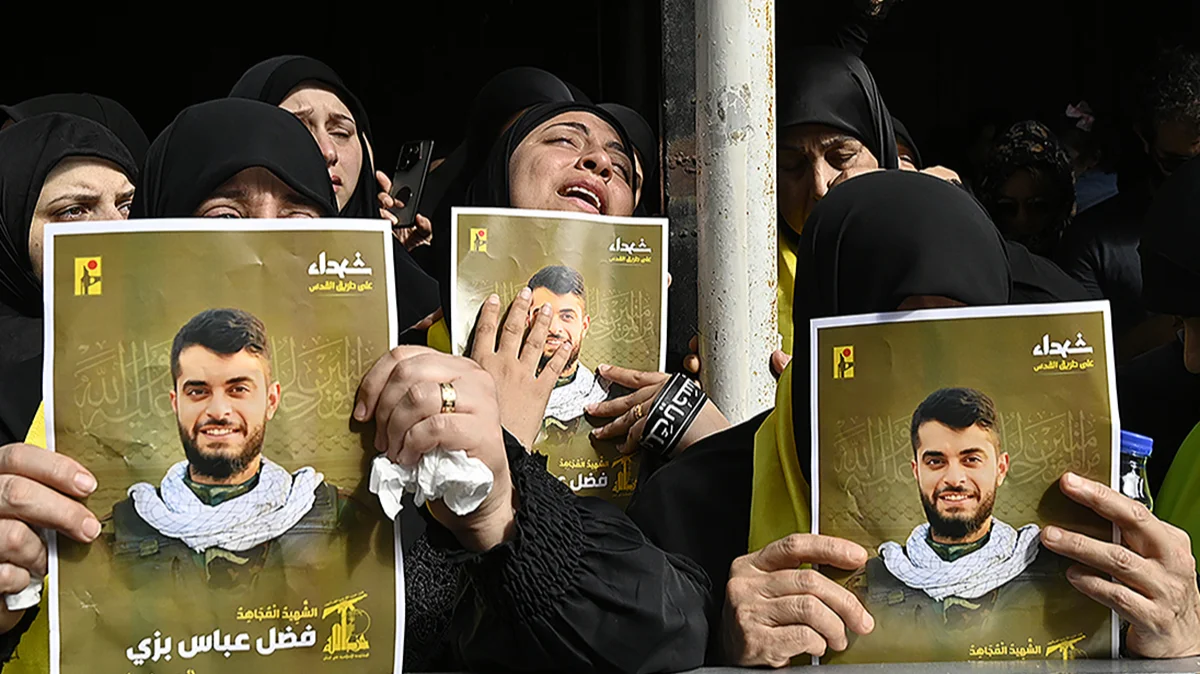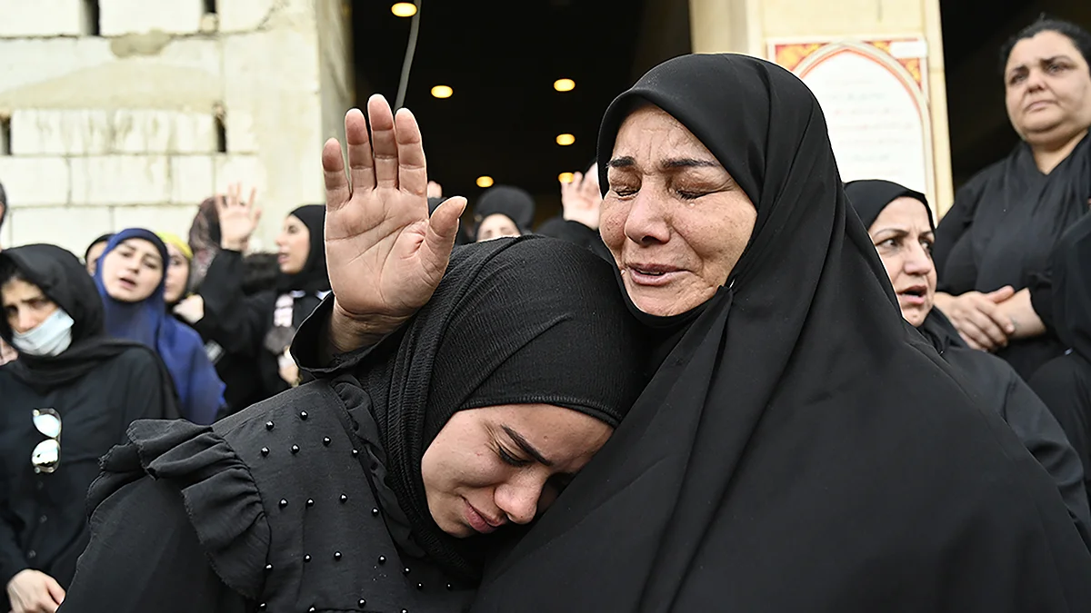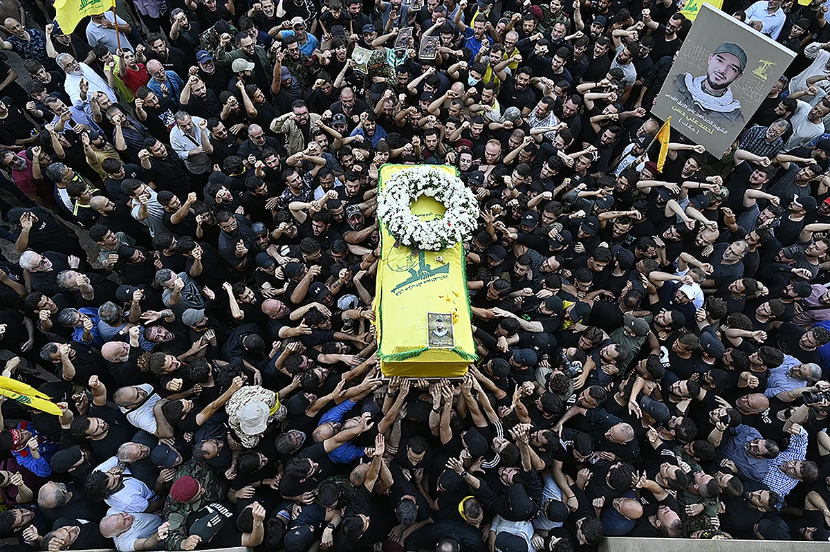 Скорбящие на похоронах двух человек, погибших в результате взрыва коммуникационных устройств, Бейрут, Ливан, 19 сентября 2024 года. Фото: Wael Hamzeh / EPA-EFE