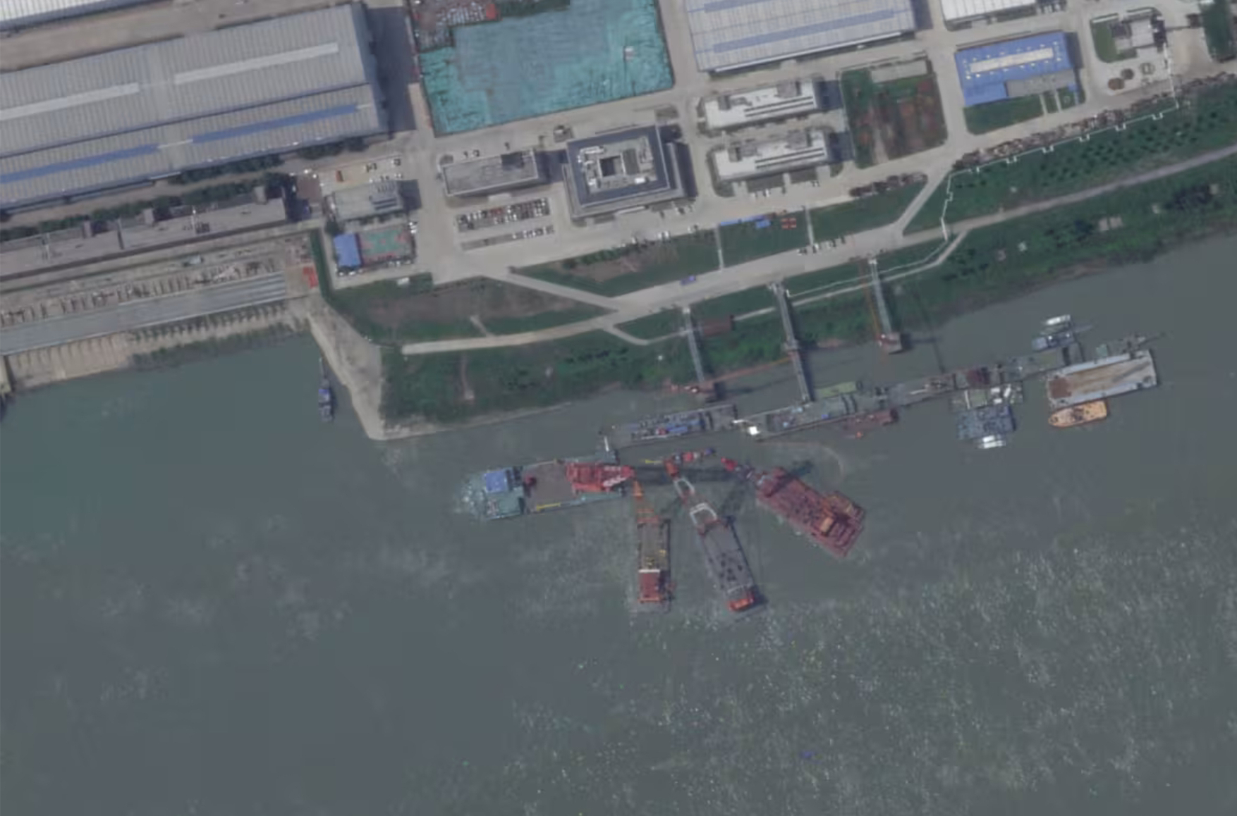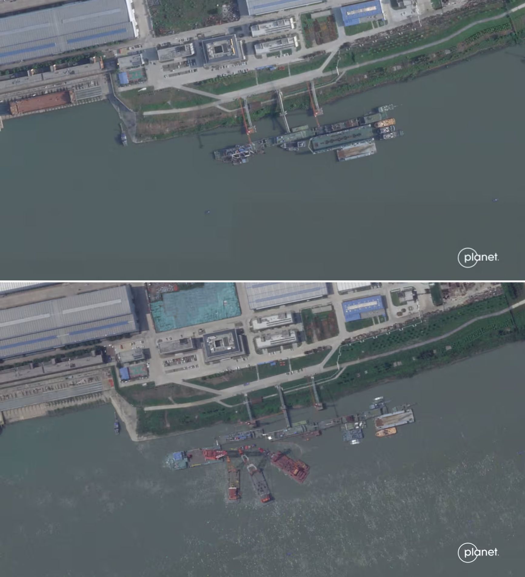 Первые публичные признаки того, что на верфи под Уханем что-то не так, появились летом, когда Томас Шугарт, бывший офицер, служивший на подлодках, старший научный сотрудник Центра новой американской безопасности (CNAS), написал серию постов в соцсетях, отметив необычную активность плавучих кранов, которая была зафиксирована коммерческими спутниковыми снимками. Шугарт предположил, что инцидент мог быть связан с новым типом подводной лодки, однако в то время он не знал, что она была атомной.