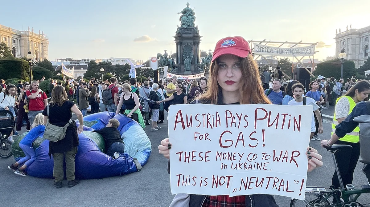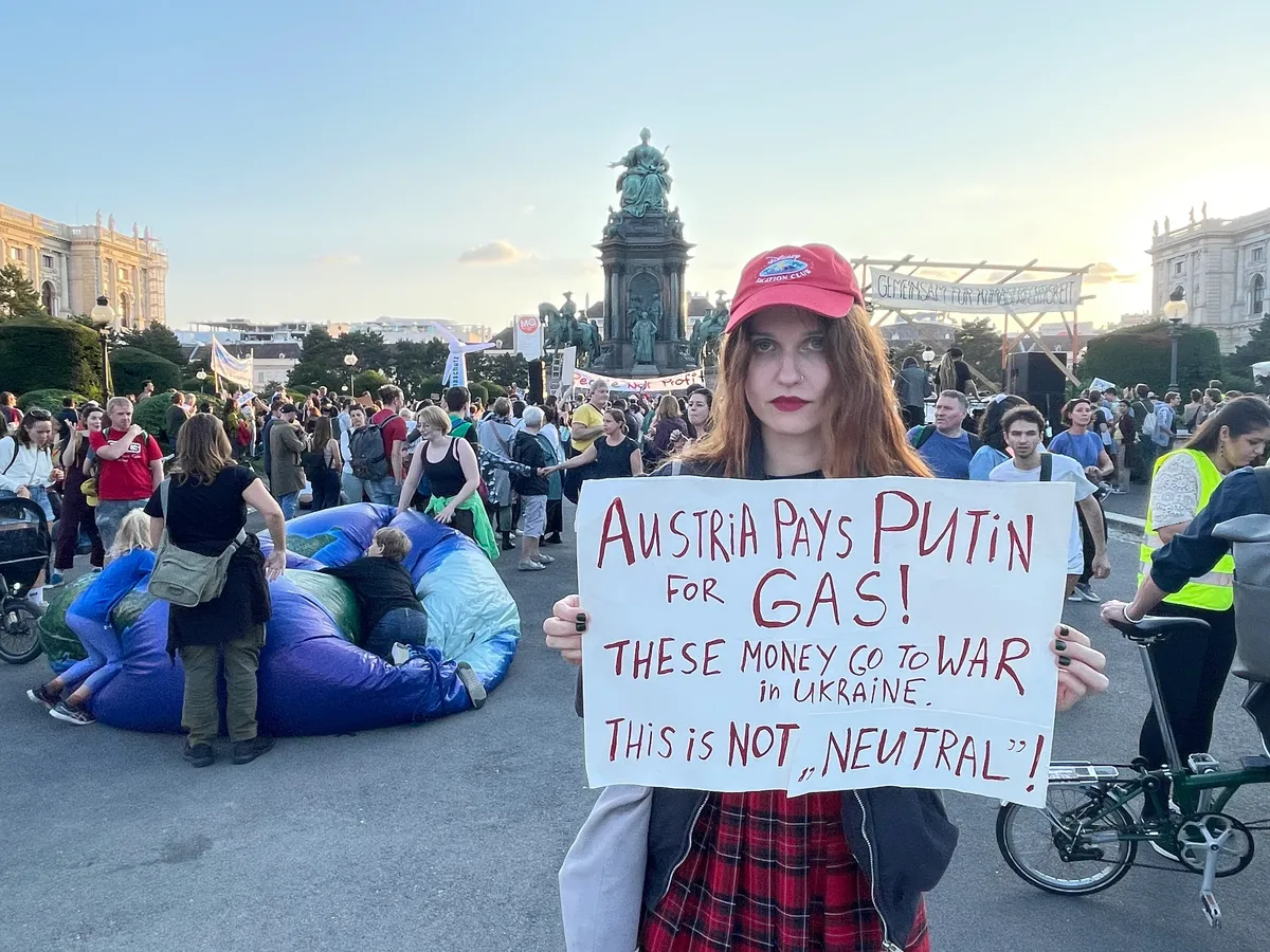 Хотя выступление Лели на митинге отменилось, она всё равно пришла на него с плакатом, на котором на английском языке написала: «Австрия платит Путину за газ! Эти деньги идут на войну в Украине. Это не нейтралитет». Именно нейтралитетом FPO, да и власти Австрии объясняют свои особые отношения с Россией.