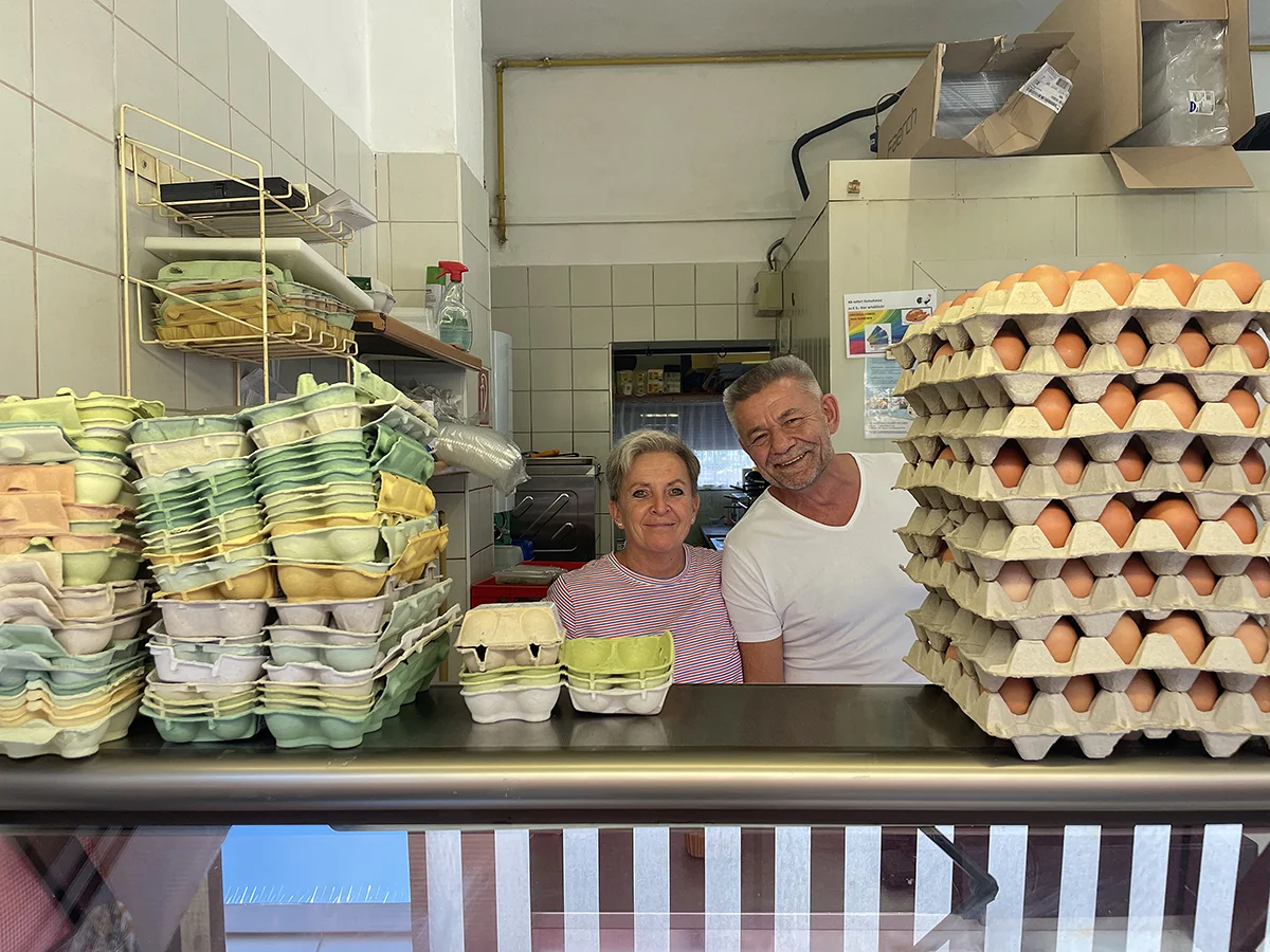 Мы подходим к палатке, где мясом и яйцами торгует 61-летний австриец Хайнц Шрайнер.