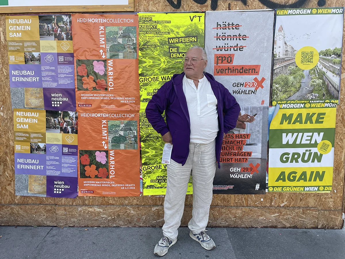 Загорелый пожилой мужчина с забранными в хвостик седыми волосами раздает у входа в метро флаеры Коммунистической партии Австрии (KPO). Одет он по-молодежному: кеды New Balance, свободная белая рубашка и фиолетовый худи. Буклеты с улыбающимися молодыми кандидатами Компартии у левого активиста Андрея Лозина берут охотно, хотя нехватка информации о выборах в Вене не чувствуется: партийной рекламой заклеены в городе все свободные поверхности.