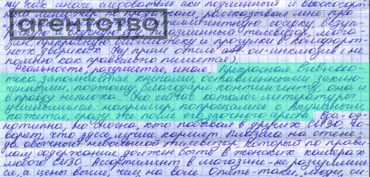 Детали. Новак в письме журналисту «Агентства» сообщила, что в «Лефортово» «прекрасная библиотека, которая заполняется книгами. «Но сейчас каталог литературы уменьшился: например, попрощались с Акуниным, кажется, сразу же после его заочного ареста», — написала Новак.