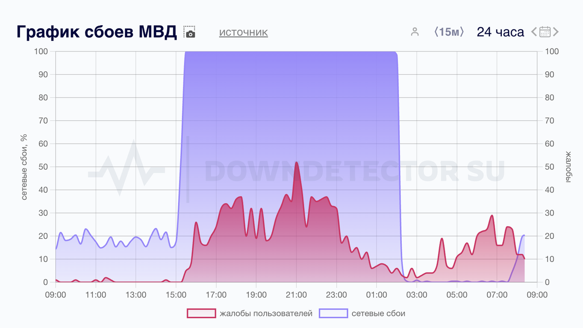 Дата16 окт. 2024Вечером 15 октября перестали работать сайты МВД и ГИБДД, следует из данных сервиса Downdetector.su.