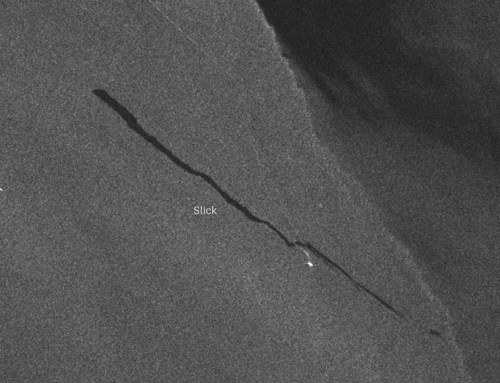 След от сброса танкера российского «теневого флота» Aruna Gulcay, который шел под флагом Маршалловых Островов, февраль 2024 года