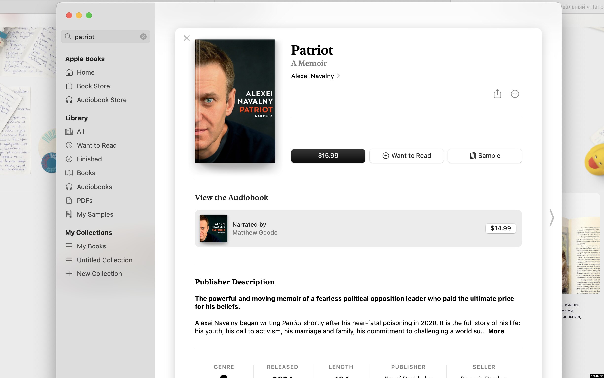 В США, странах Америки, Азии, Европы и Австралии, и в интернет-магазинах 22 октября поступили в продажу посмертные мемуары Алексея Навального, книга "Патриот". Они вышли на 26 языках одновременно в 36 странах.