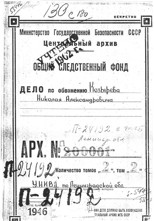 – 29 мая 1944 года академик Григорий Шайн обратился к Берии с ходатайством об освобождении Козырева из заключения, мотивируя свою просьбу необходимостью восстанавливать разрушенные фашистами астрономические центры. Ходатайство подписал еще один академик – Сергей Вавилов, родной брат незадолго перед тем погибшего в ГУЛАГе генетика Николая Вавилова. Остальные пулковские астрономы к тому времени уже погибли, поэтому, кроме Козырева, спасать было больше некого, – говорит Михаил Васильев.