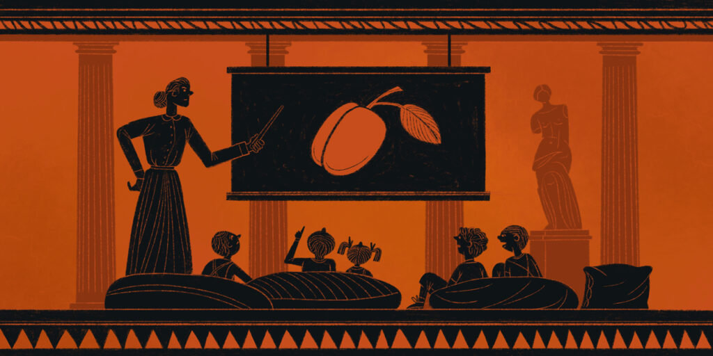 Последние три года я работала учителем в частной начальной школе, которую я бы не хотела здесь называть. Это небольшая школа в центре города, прекрасно организованная и довольно дорогая. У детей есть все основания любить ее. В этой школе нет «Разговоров о важном» и других агрессивно-патриотических мероприятий. Эта школа — отдельный закрытый мир, крепость, в которую почти не проникают ужасы мира внешнего. Жизнь там продолжается — если не совсем как прежде, то, по крайней мере, хорошо. Со школьниками не говорят о войне, зато много говорят о культуре и искусстве. Есть даже отдельный предмет, этому посвященный: он очень условно называется «мифология». Именно его я и вела.