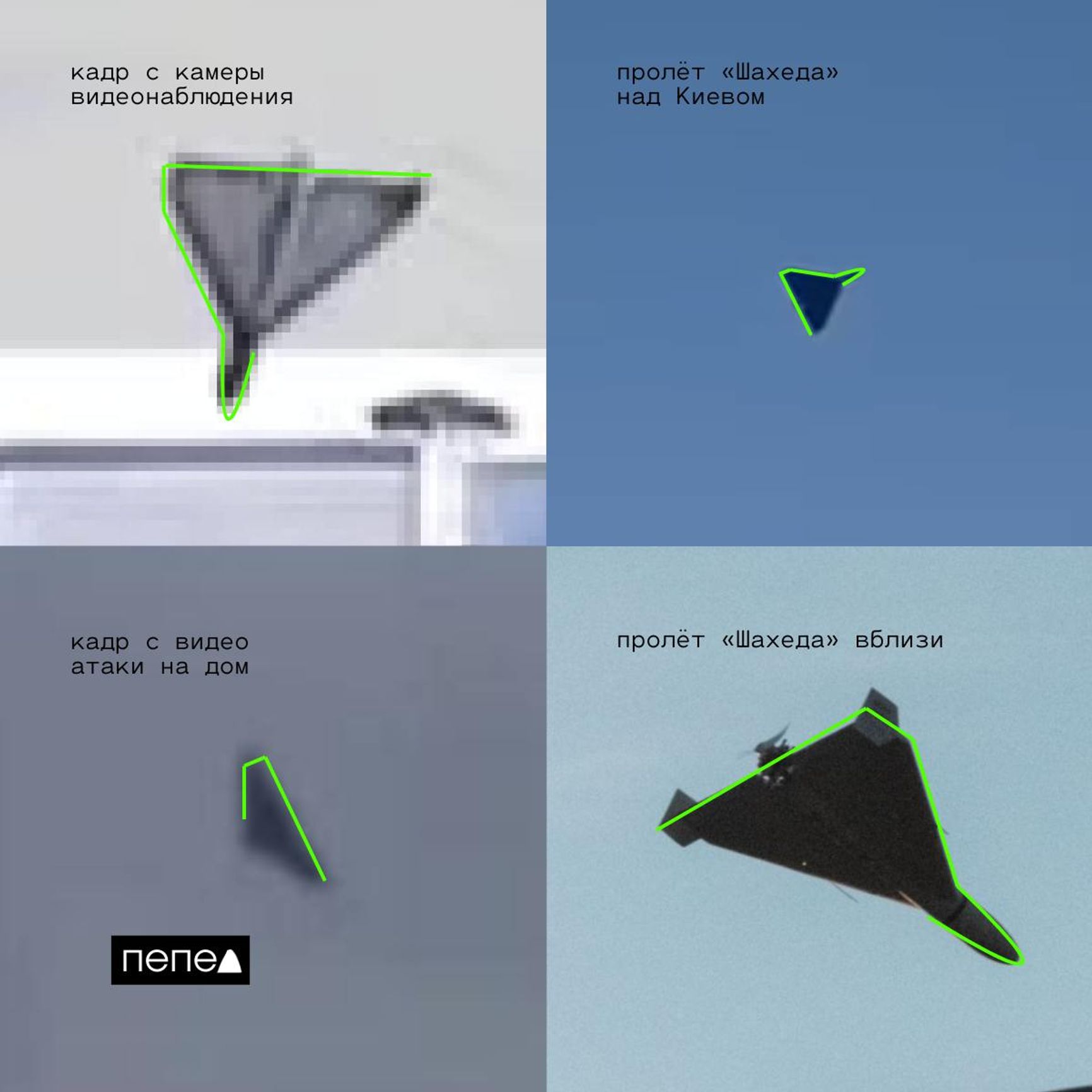 Только этот ударный беспилотник имеет характерную носовую часть и треугольные крылья с тупыми концами, отмечает издание. Именно такой силуэт виден на видео с камеры видеонаблюдения.