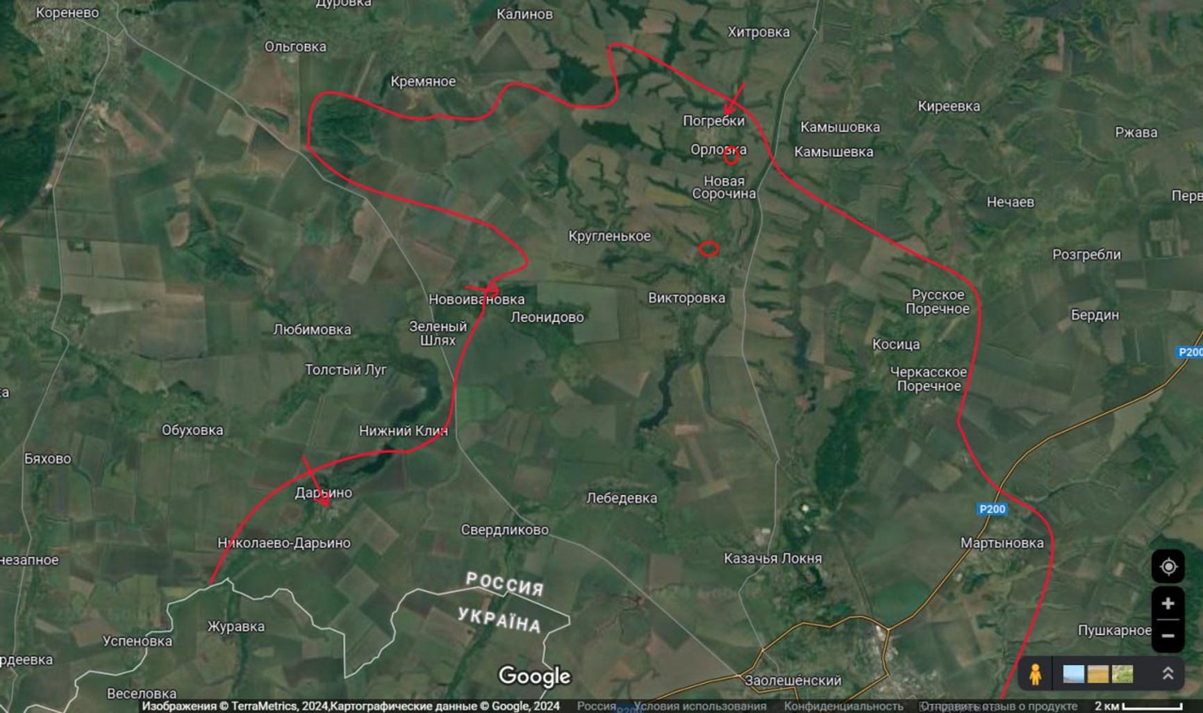 Присутствие бойцов ВС РФ в Дарьино также подтверждается геолоцированным пророссийским OSINT-каналом «Сливочный каприз» видео с боями непосредственно в жилой застройке села. На карте DeepState этот населенный пункт помечен как находящийся в «серой зоне».