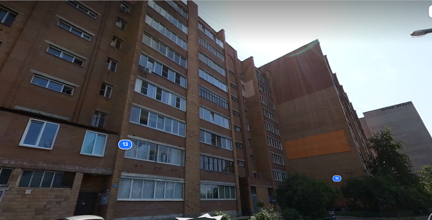 Фасад дома по улице Светлогорской в Красноярске. В правом верхнем углу видно наружнее утепление одной из квартир, как на фото с гаубицами. Снимок: «Яндекс Карты», 2024 год