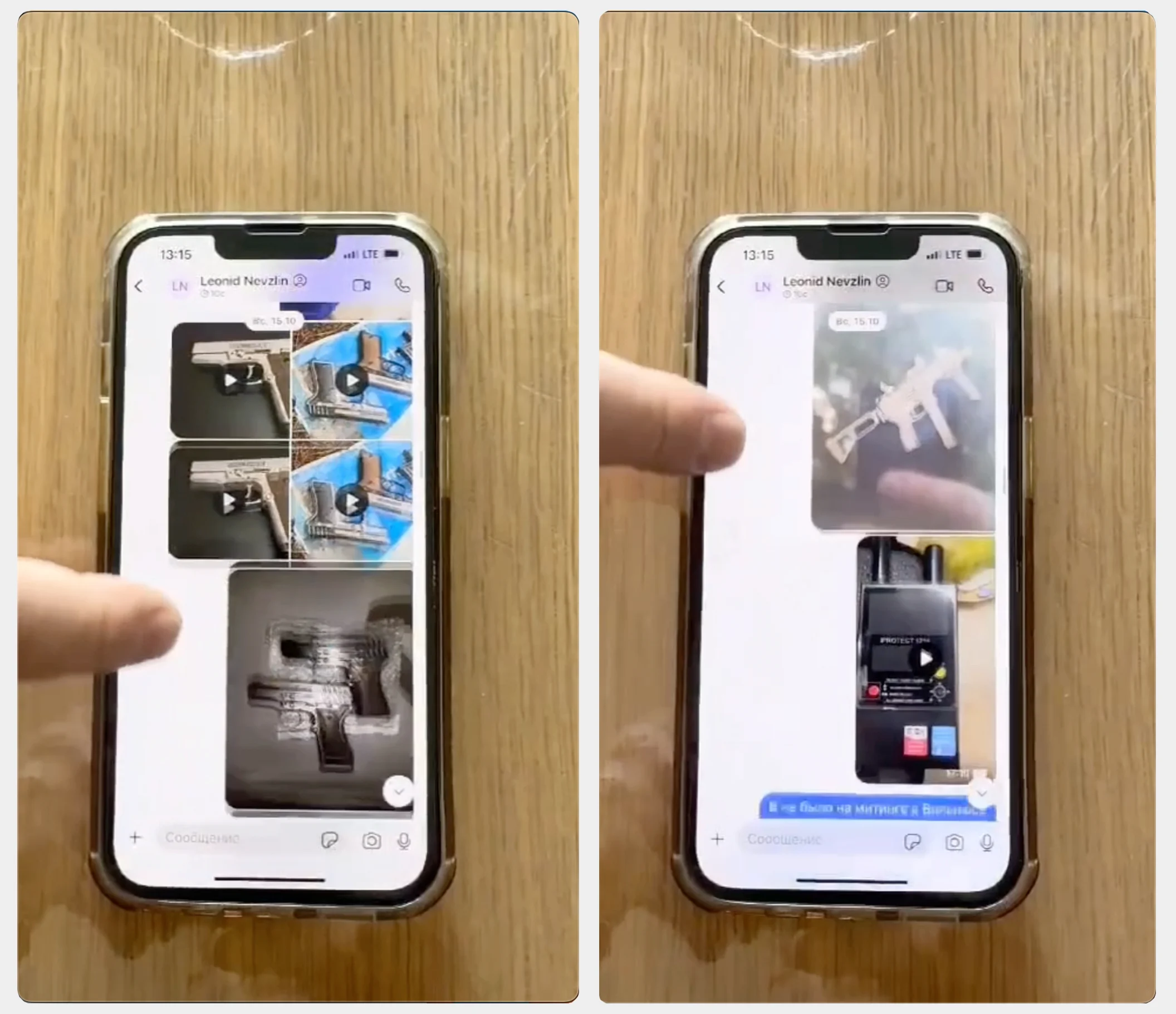 «Невзлин 10 секунд» — чат в сигнале, 449 сообщений с 25 января по 20 ноября 2023-го. В этот день собеседники выставили таймер на автоудаление сообщений через 10 секунд. Остались только звонки, последний был 26 декабря. Это тот же аккаунт на основном телефоне Невзлина, что и «Невзлин без таймера» — но в этом чате он общается с аккаунтом Блинова на его запасном iPhone 13. Он есть в форме трех видео плохого качества, где iPhone 13 с чатом снят на другой телефон: два видео охватывают почти весь день 1 сентября после нападения на Петрачкову, третье — всю переписку с 12 октября 2023-го. Из-за этого скриншоты довольно трудночитаемые.