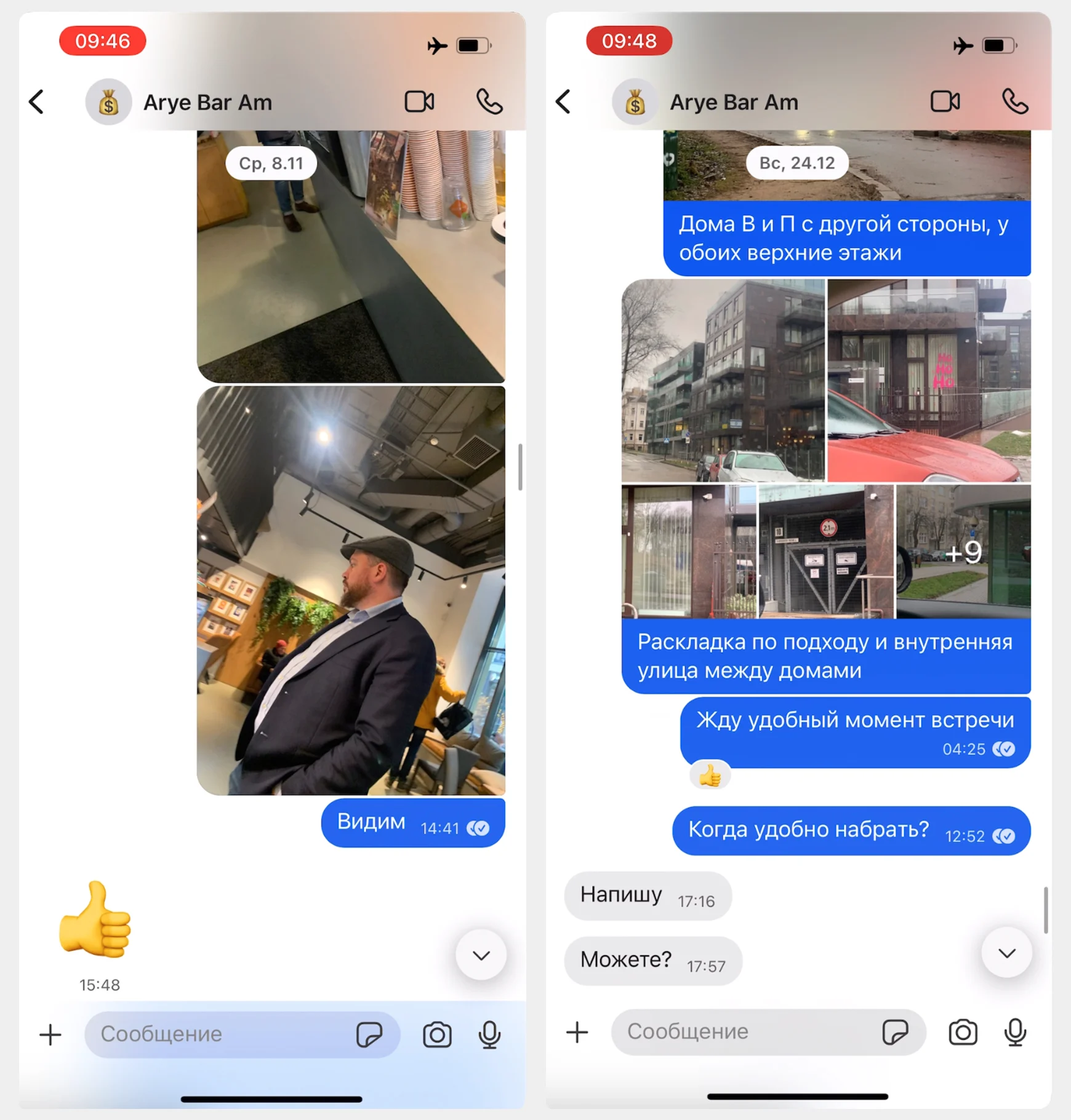 Скринкасты с чатами. После выхода первой публикации RT пропавший со связи Матус неожиданно прислал ФБК несколько файлов с записью экрана, на котором листается чат. Здесь уже нет проблем с четкостью изображения. Такие скринкасты есть для чатов, которые мы обозначили как Arye Bar Am (целиком), WhatsApp (целиком) и «Невзлин без таймера» (только с 7 августа). Чаты в Threema и «Невзлин 10 секунд» остались только в первоначальном виде, где один телефон снимают другим телефоном.