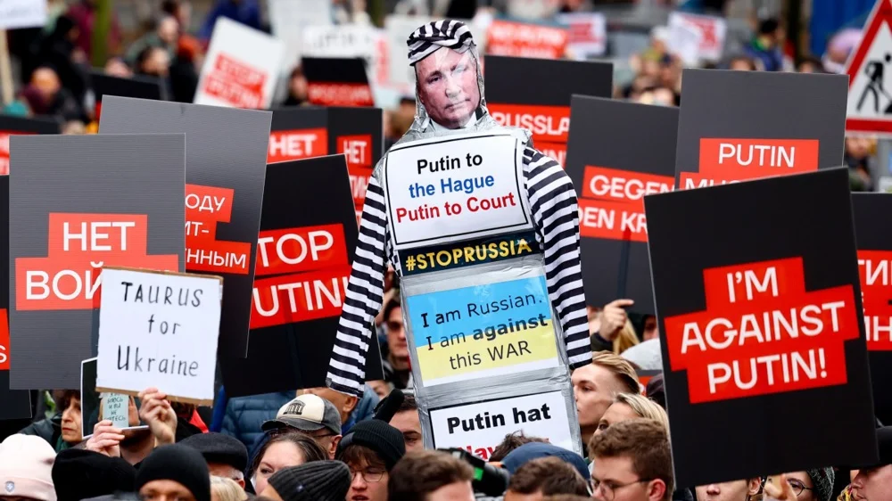 Anti-war demonstrators march in Berlin, 17 November 2024. Photo: EPA-EFE/FILIP SINGER