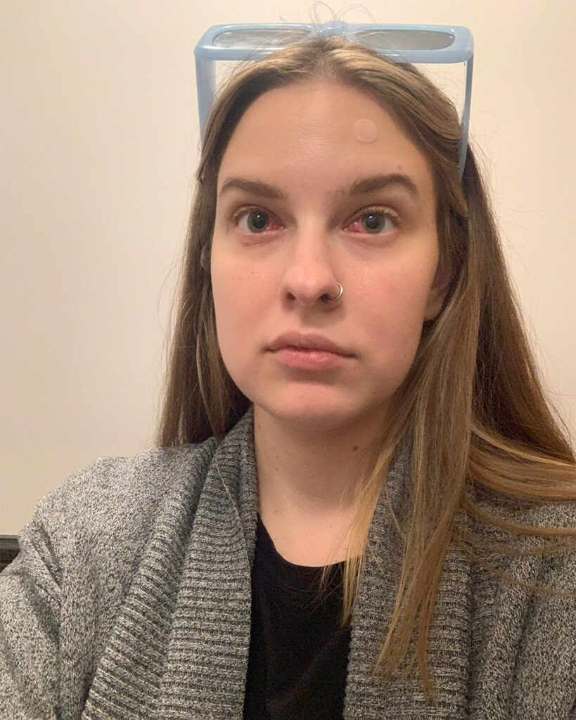 Меня очень пугал наркоз, но в итоге все прошло хорошо: в этот раз меня не рвало, и я чувствовала себя отлично. Первые дни немного двоилось в глазах, но скоро и это прошло. Нужно было снова лежать в темноте и не напрягать глаза недели две. Но все равно восстановление пошло не по плану. Во-первых, у меня не исчезли полностью рассасывающиеся швы, так что повторился детский кошмар, когда мне целились в глаз острым инструментом, чтобы вытащить нить. Во-вторых, у меня из правого глаза несколько раз шла кровь.