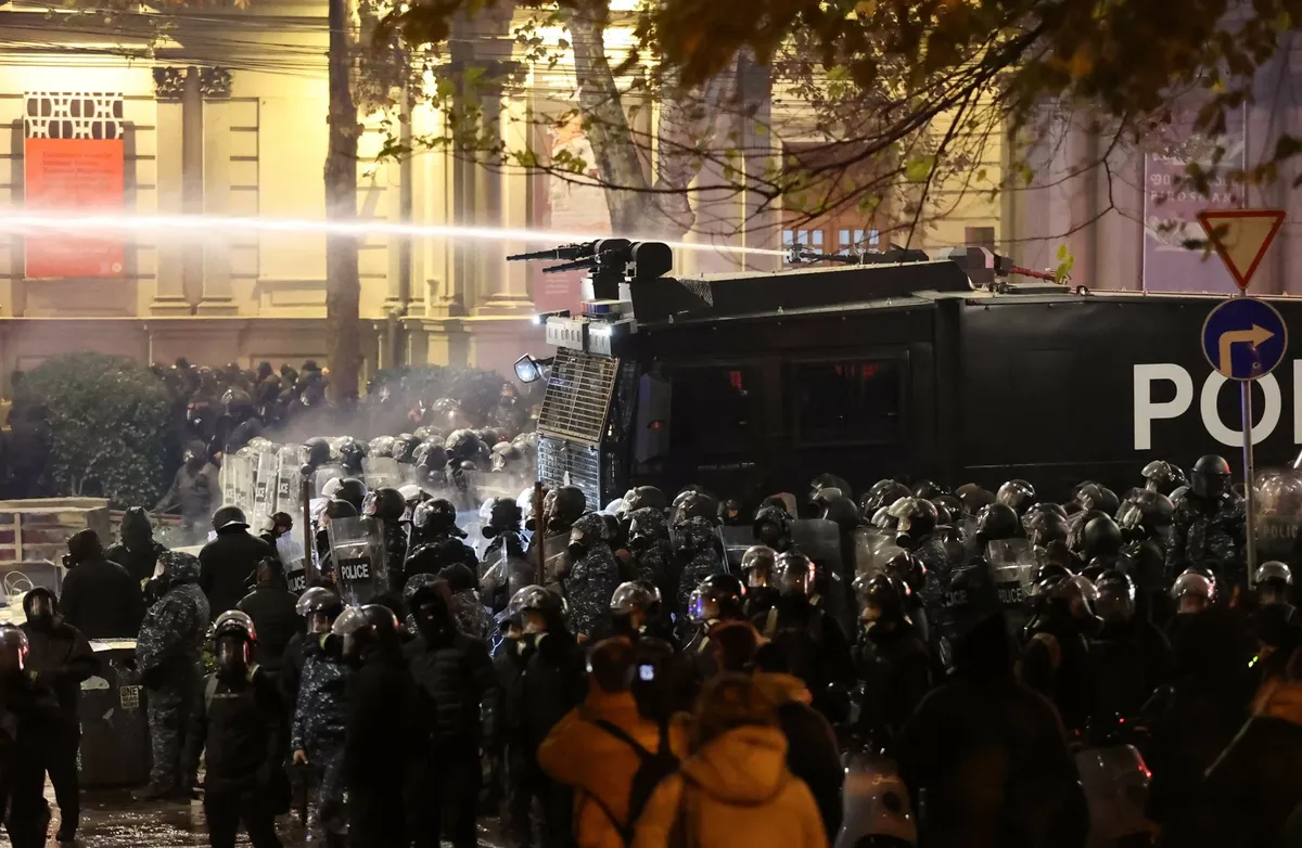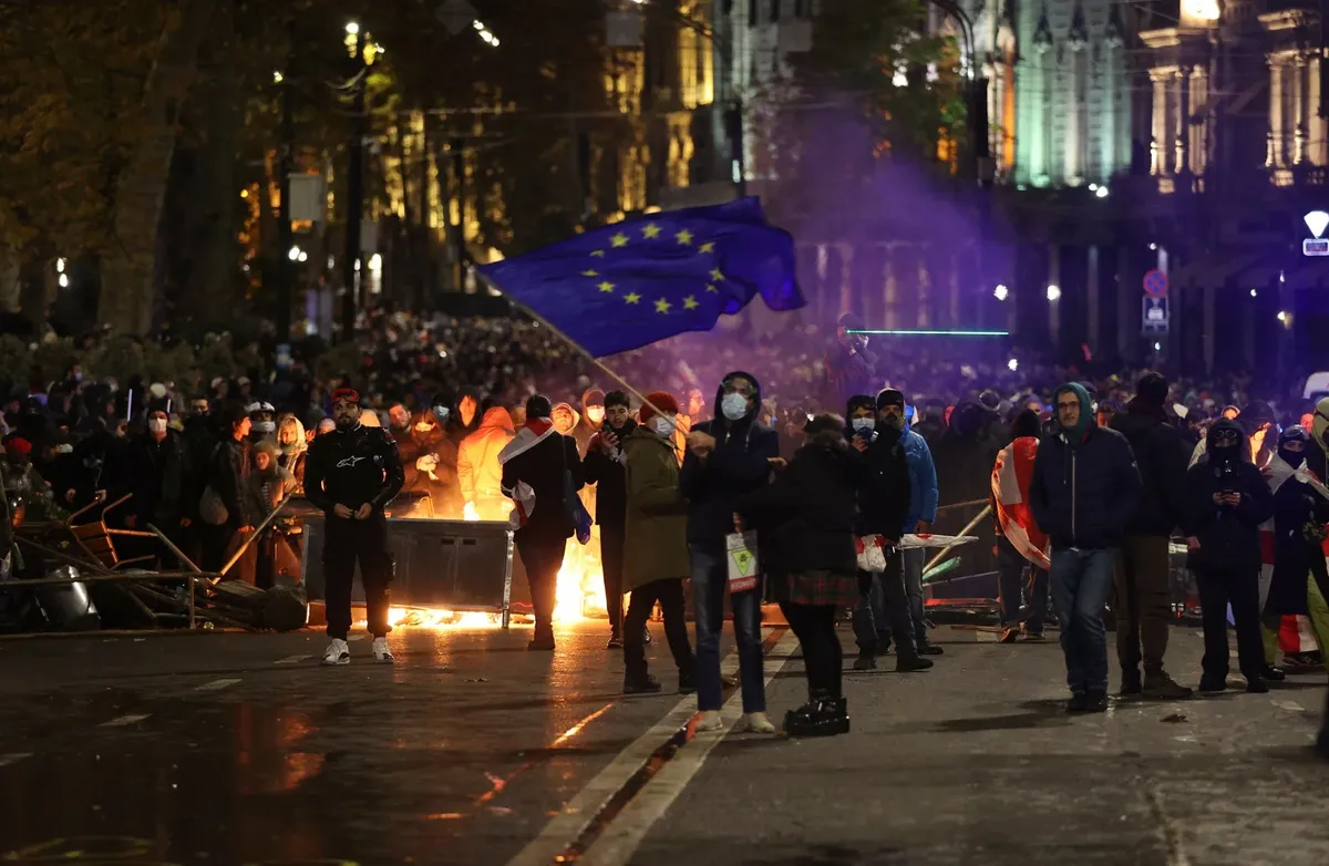 Особенно ожесточенными столкновения на Руставели стали после того, как премьер-министр Ираклий Кобахидзе, сразу после утверждения на пост, заявил на брифинге о временном отказе Грузии от переговоров по членству в ЕС до конца 2028 года, то есть до следующих парламентских выборов.