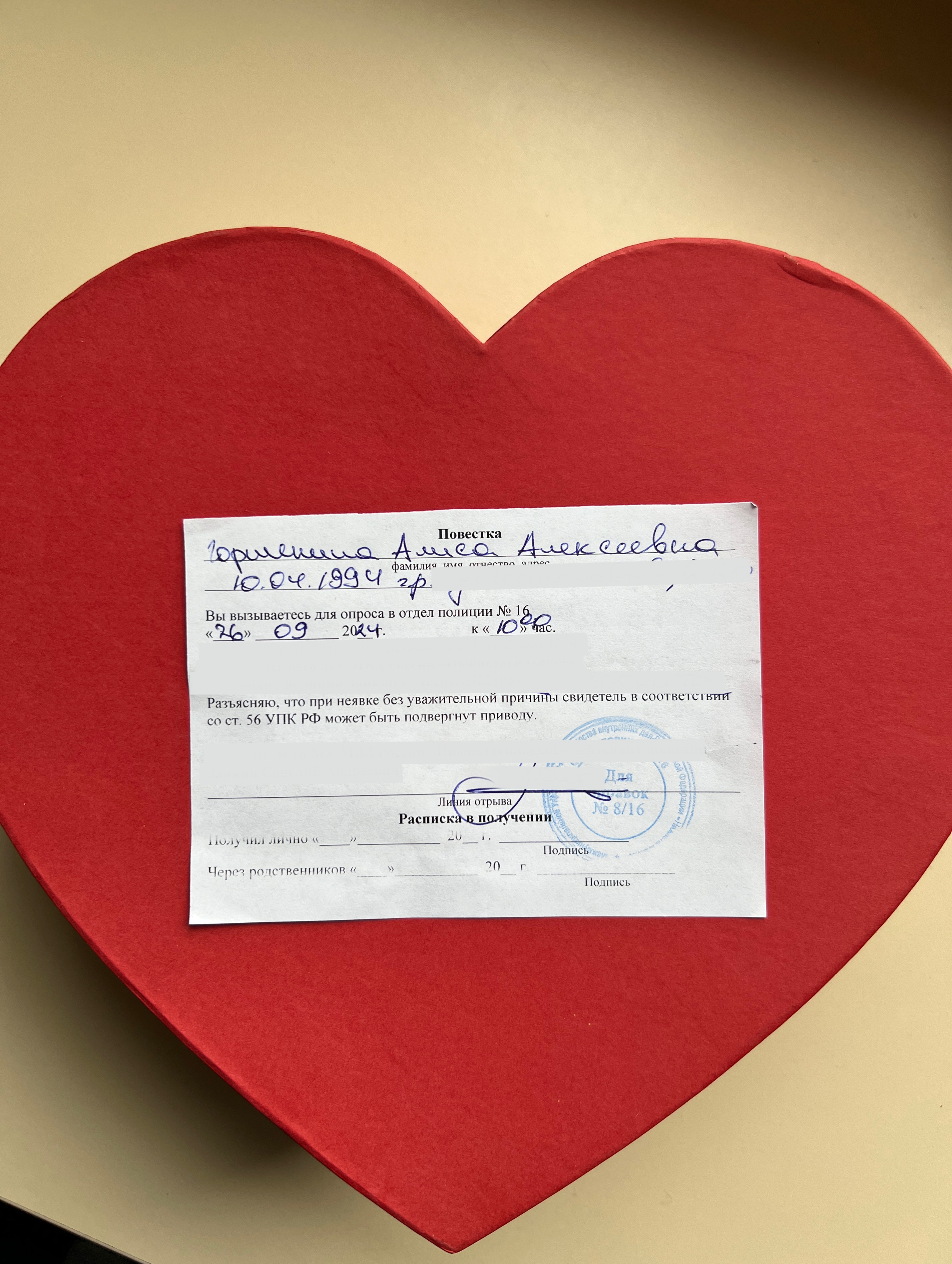 – Это такой постоянный фон жизни многих людей, которые находятся в России. В середине сентября я обнаружила повестку в полицию возле двери своей квартиры, – рассказала художница.