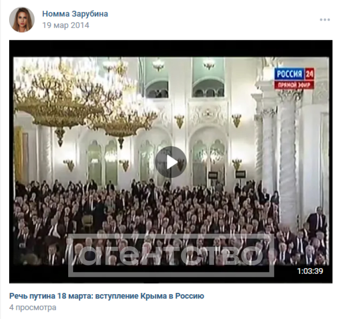 Минюст США предъявил обвинение гражданке России Номме Зарубиной в предоставлении ложных данных сотрудникам ФБР. В США она попала, несмотря на то, что активно поддерживала Владимира Путина и аннексию Крыма в своем профиле во «ВКонтакте», следует из анализа «Агентства». За границей Зарубина выступала на форуме о «деколонизации» России, который в ноябре признали террористической организацией.
