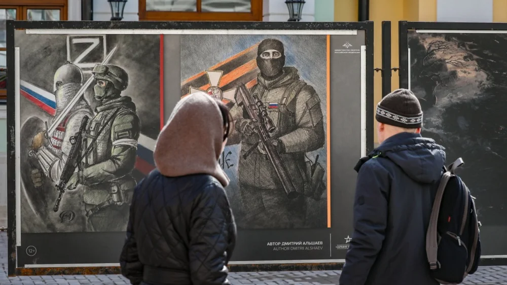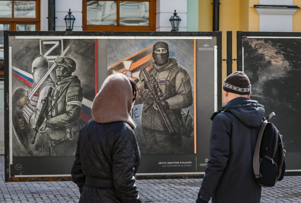 A street exhibition depicting Russian soldiers in Moscow, 5 April 2024. Photo: EPA-EFE/YURI KOCHETKOV