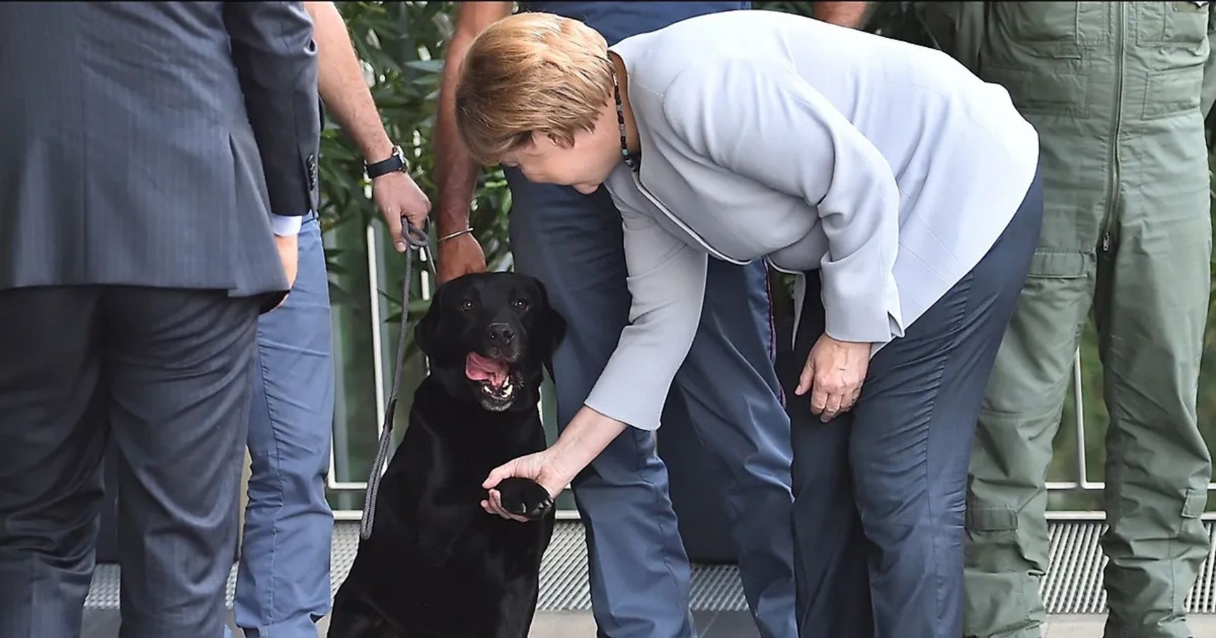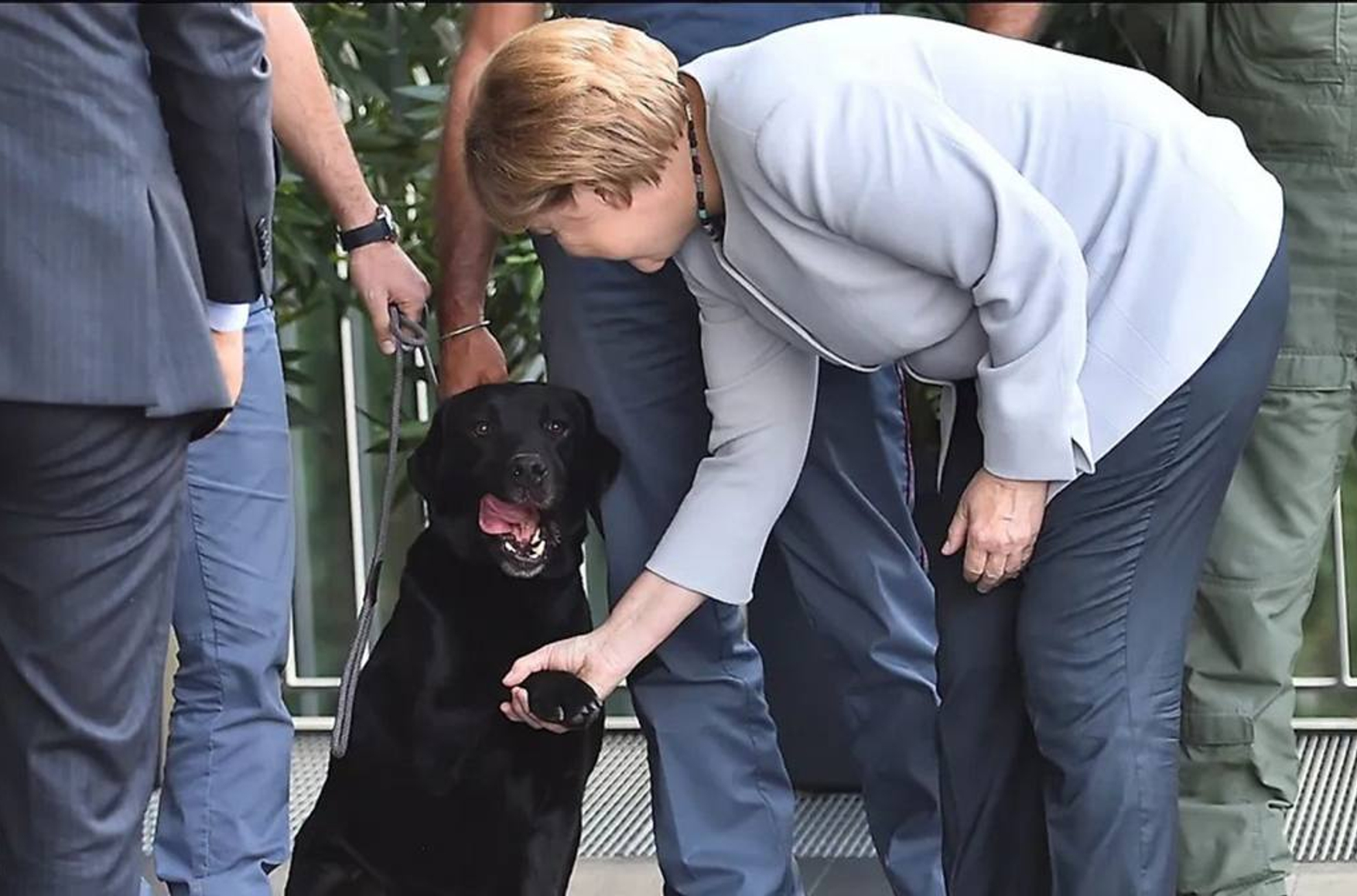 Во время визита в Италию в 2016 году ее запечатлели в момент, когда она с улыбкой пожимала лапу полицейской служебной собаке, точно такому же лабрадору, каким ее якобы напугал Путин на переговорах в 2007 году в Сочи.