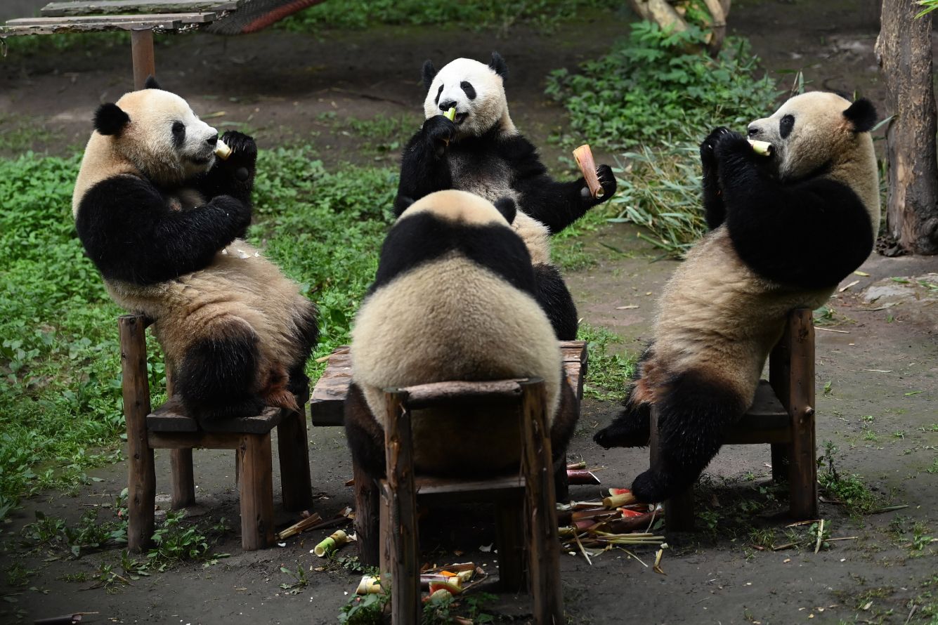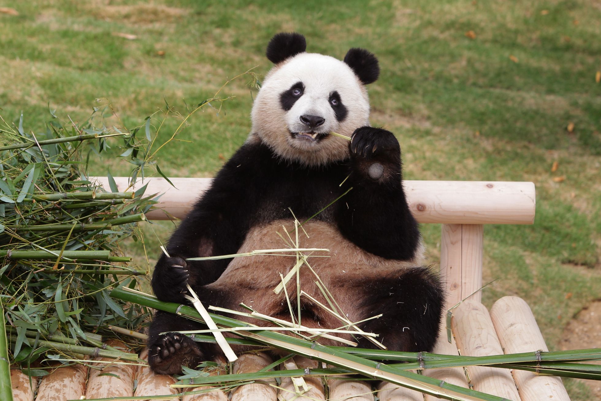 Рацион панды на 99% состоит из растений (преимущественно бамбука). Чтобы удовлетворить свои энергетические потребности, панда каждый день съедает от 12 до 38 килограммов бамбука и тратит на пережевывание примерно полдня. В перерывах между едой панды спят по два-четыре часа. Какать они могут прямо во сне — около 50 раз в день.