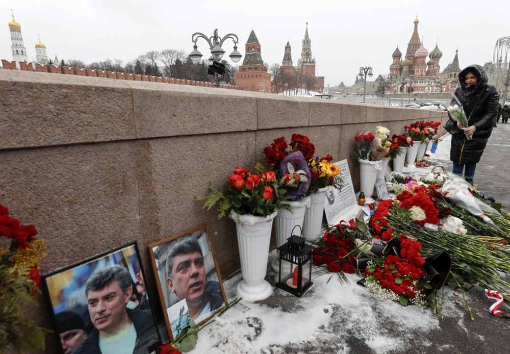 The Nemtsov Bridge memorial on 27 February 2023. Photo: EPA-EFE/SERGEI ILNITSKY