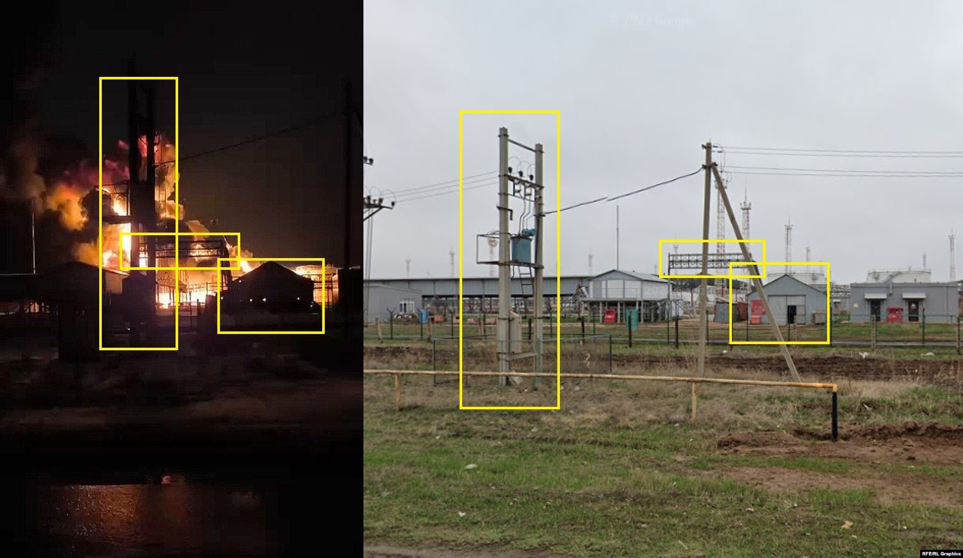 Радио Свобода и несколько телеграм-каналов установили координаты пожара и выяснили, что повреждённый объект – это нефтебаза "Кристалл" Росрезерва, где хранится топливо для военного аэродрома Энгельс-2.