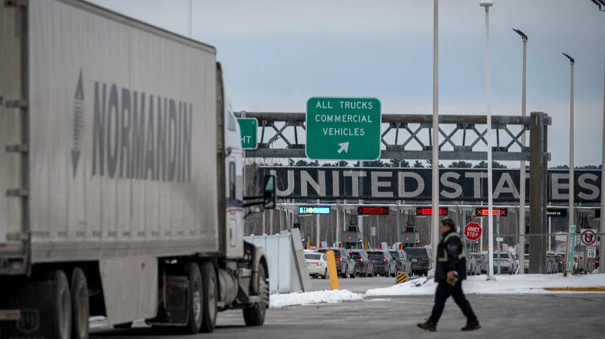 Грузовик у пункта пропуска на границе Канады и США, Квебек, Канада, 2 февраля 2025 года. Фото: Andrej Ivanov / AFP / Scanpix / LETA