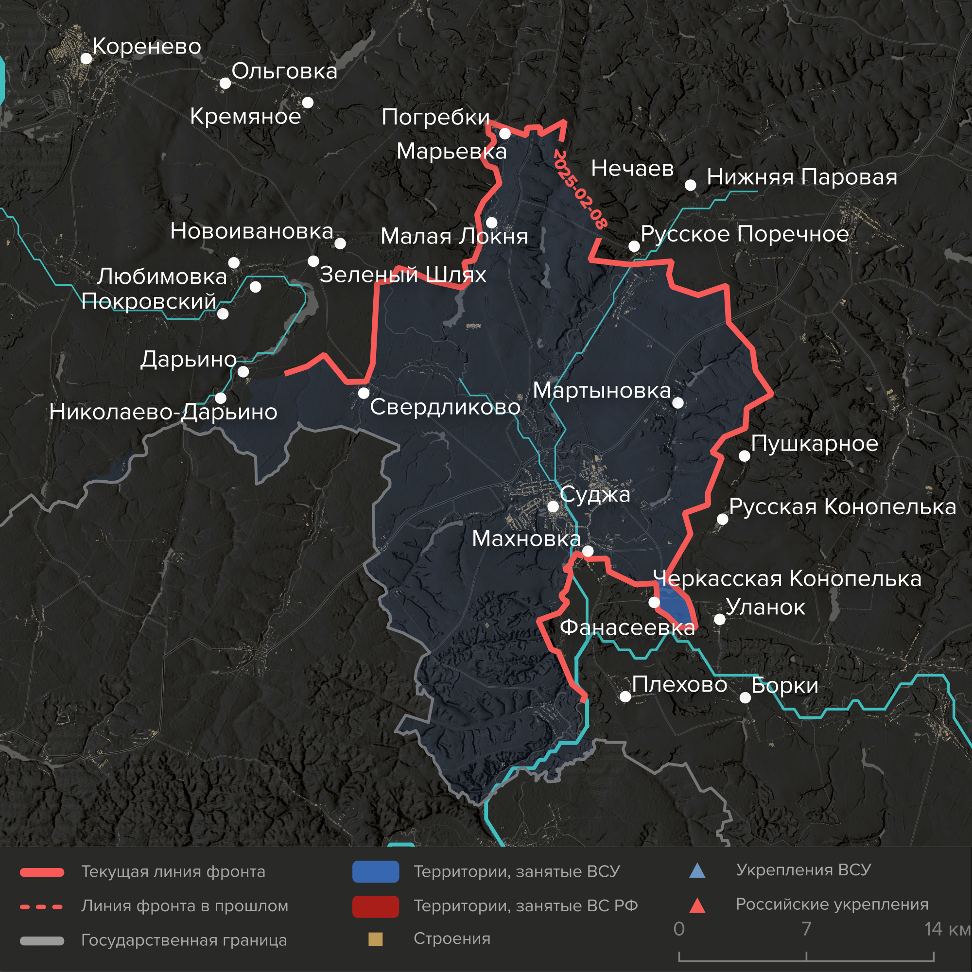 - Российские войска еще в конце декабря вышли к южной окраине Суджи. Там прорыв со стороны села Черкасская Конопелька через Махновку был остановлен контратаками ВСУ.