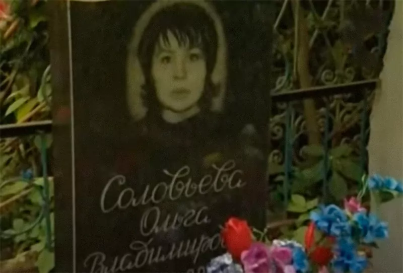 Могила Ольги Соловьевой, жены Вячеслава. Кадр: телепередача «Криминальная Россия. Современные хроники»